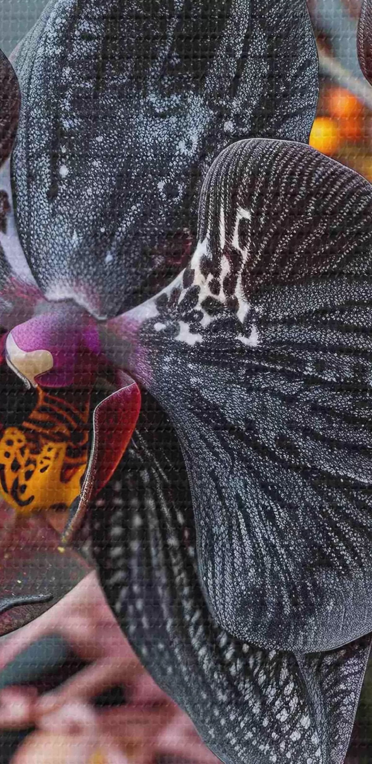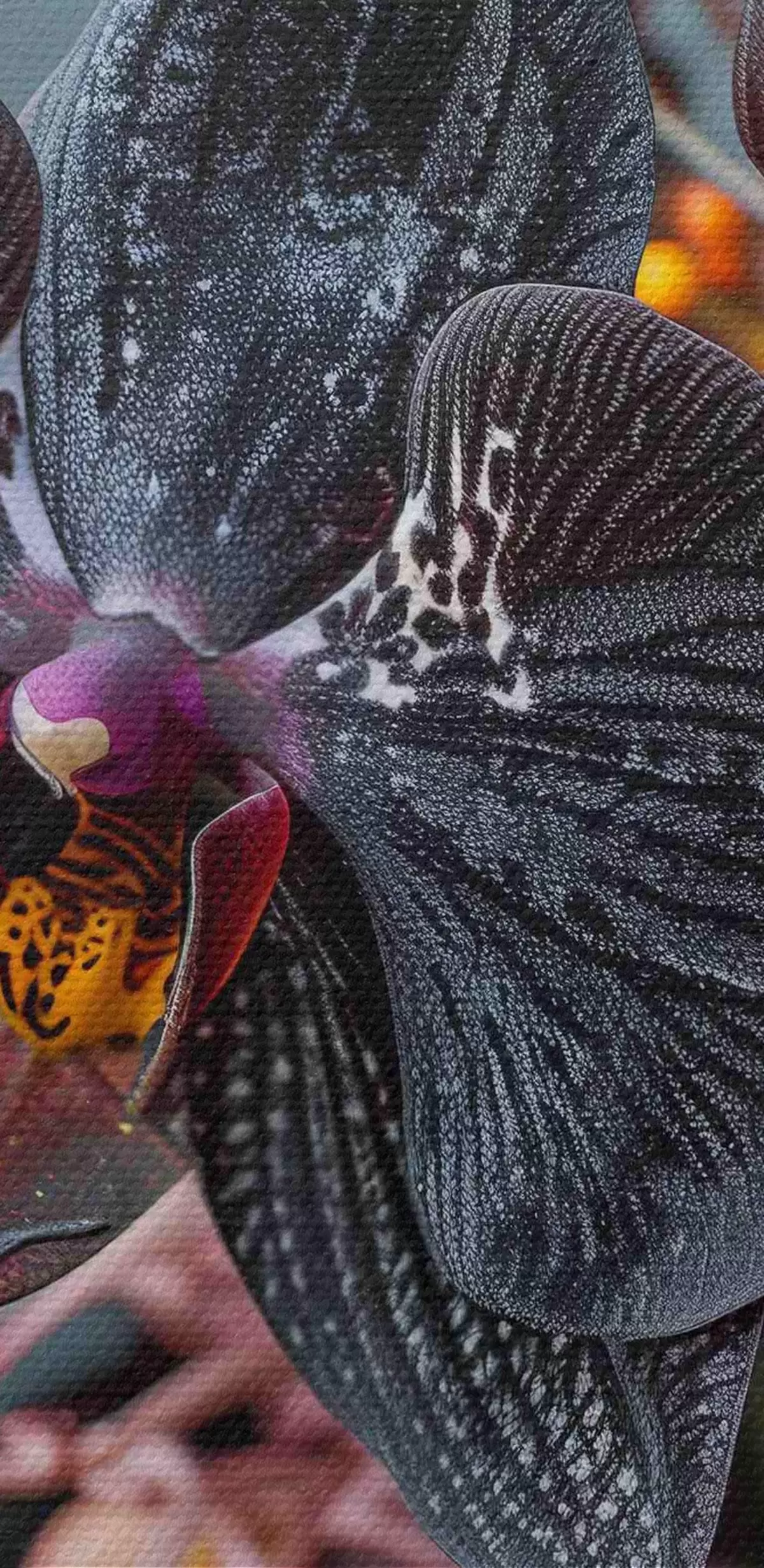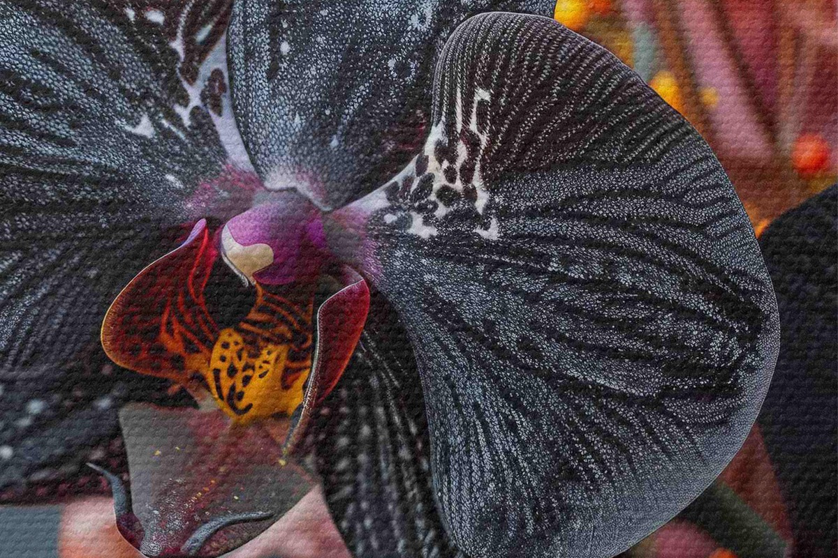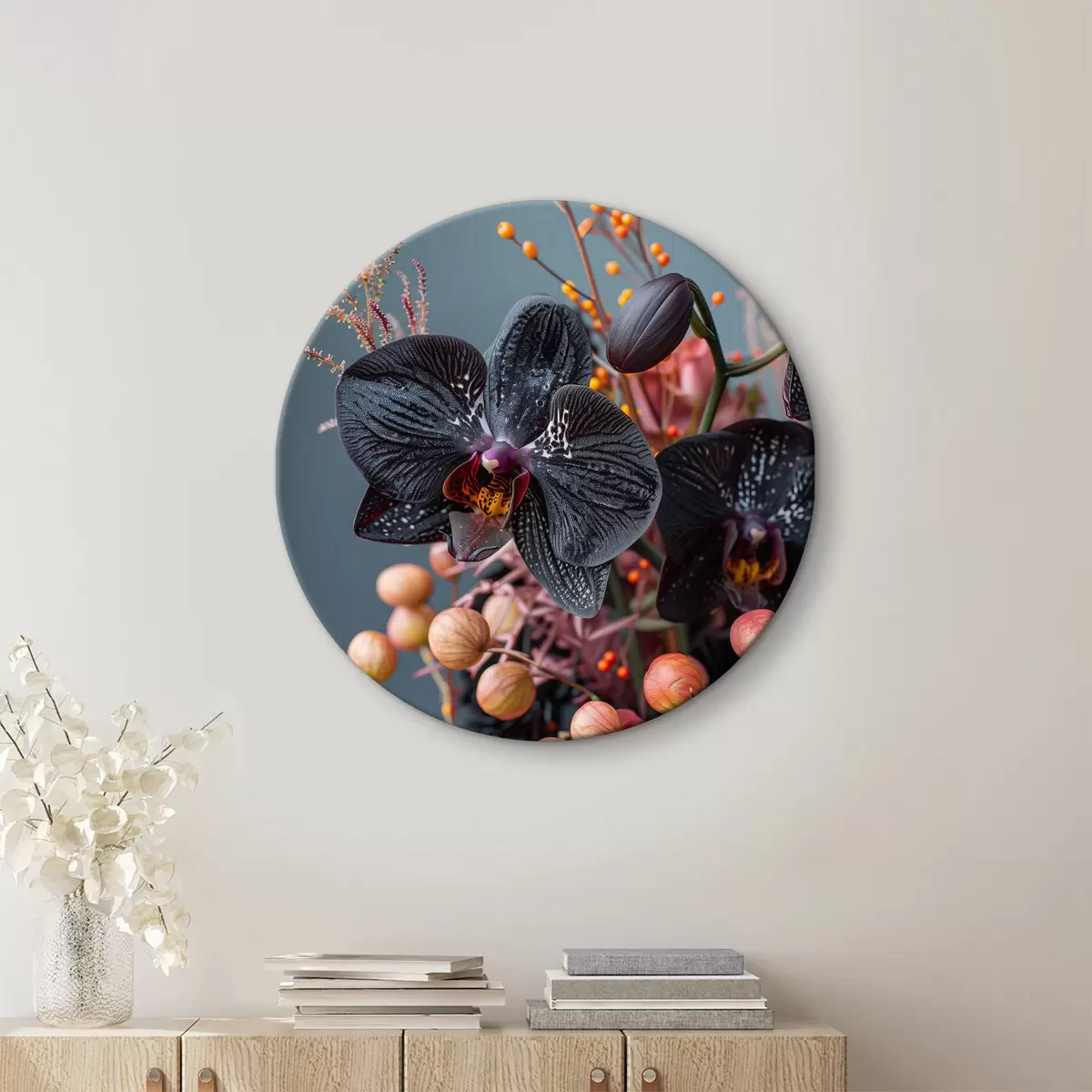 Picturi rotunde Aranjament floral elegant cu orhidee neagră și alte plante Nr r40662