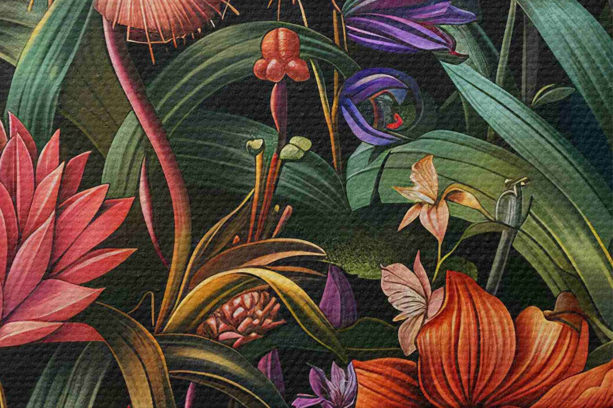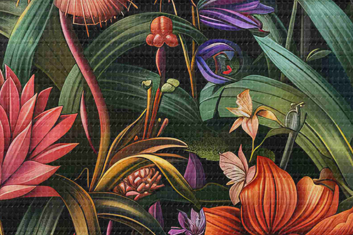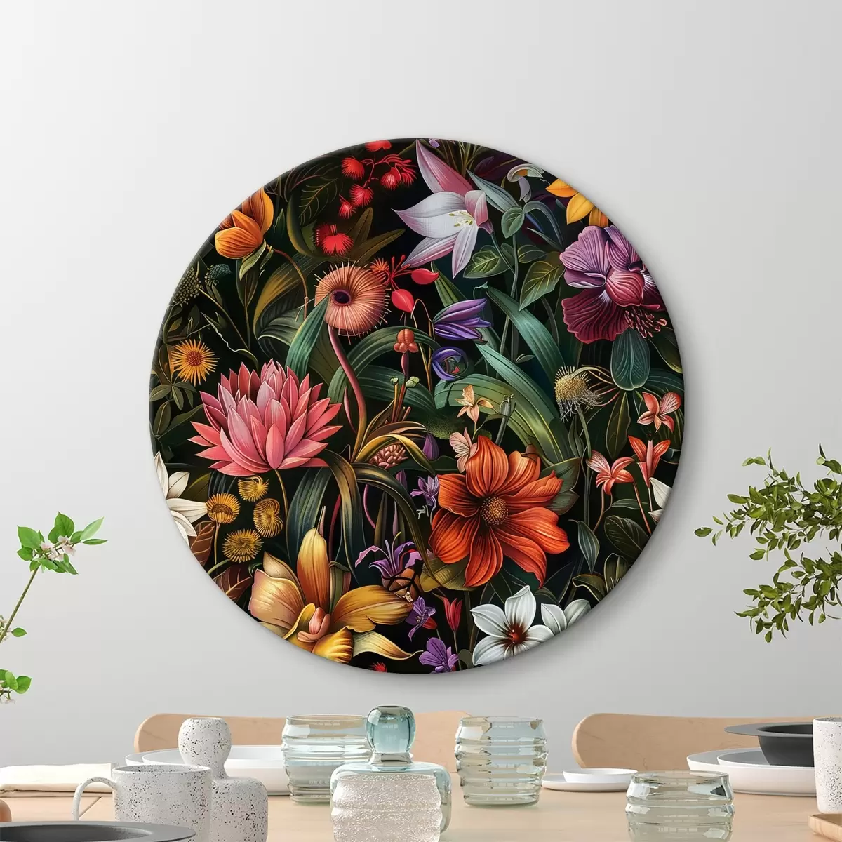 Picturi rotunde Compoziție tropicală cu diverse verdeață și flori tropicale Nr r40667