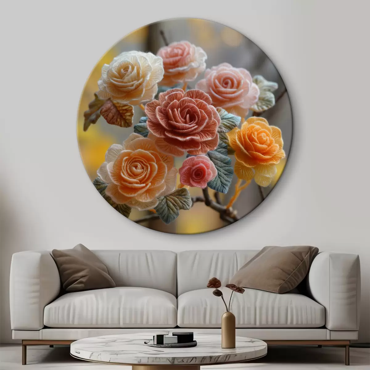 Picturi rotunde Un buchet pufos tricotat de trandafiri în stil handmade Nr r40673