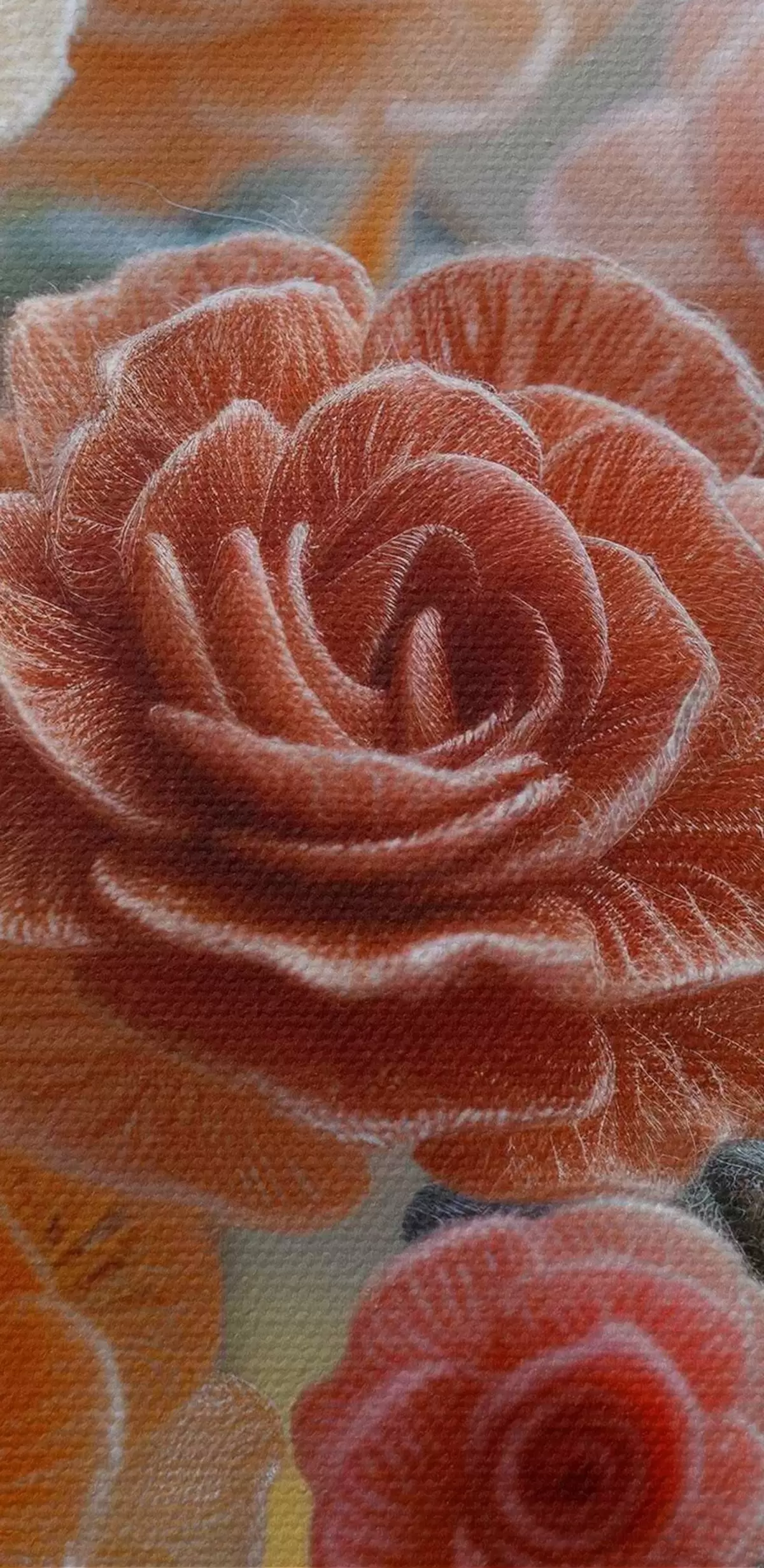 Țesătura fină a firelor de pe această pânză seamănă cu suprafața pânzelor artiștilor profesioniști.