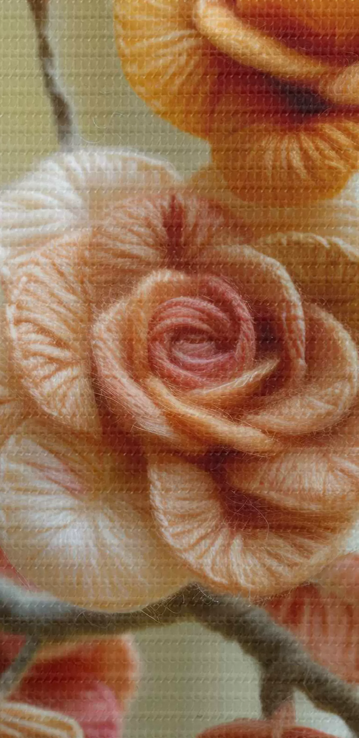 Picturi rotunde Trandafiri țesuți din lână moale și pufoasă pe lemn Nr r40674