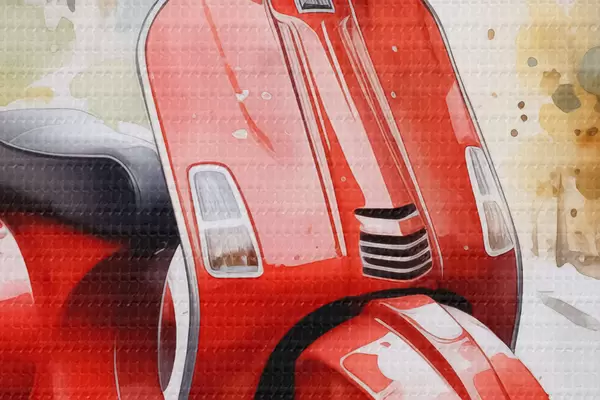 Picturi rotunde Motocicletă roșie pe strada din Roma acuarelă Nr r40728