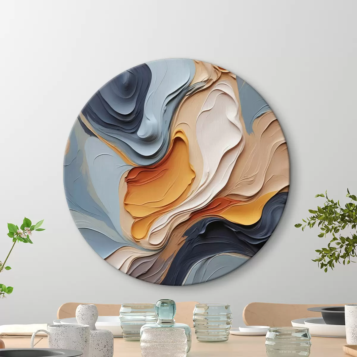 Picturi rotunde Abstracție în nuanțe de albastru și portocaliu cu imitarea texturii Nr r40743