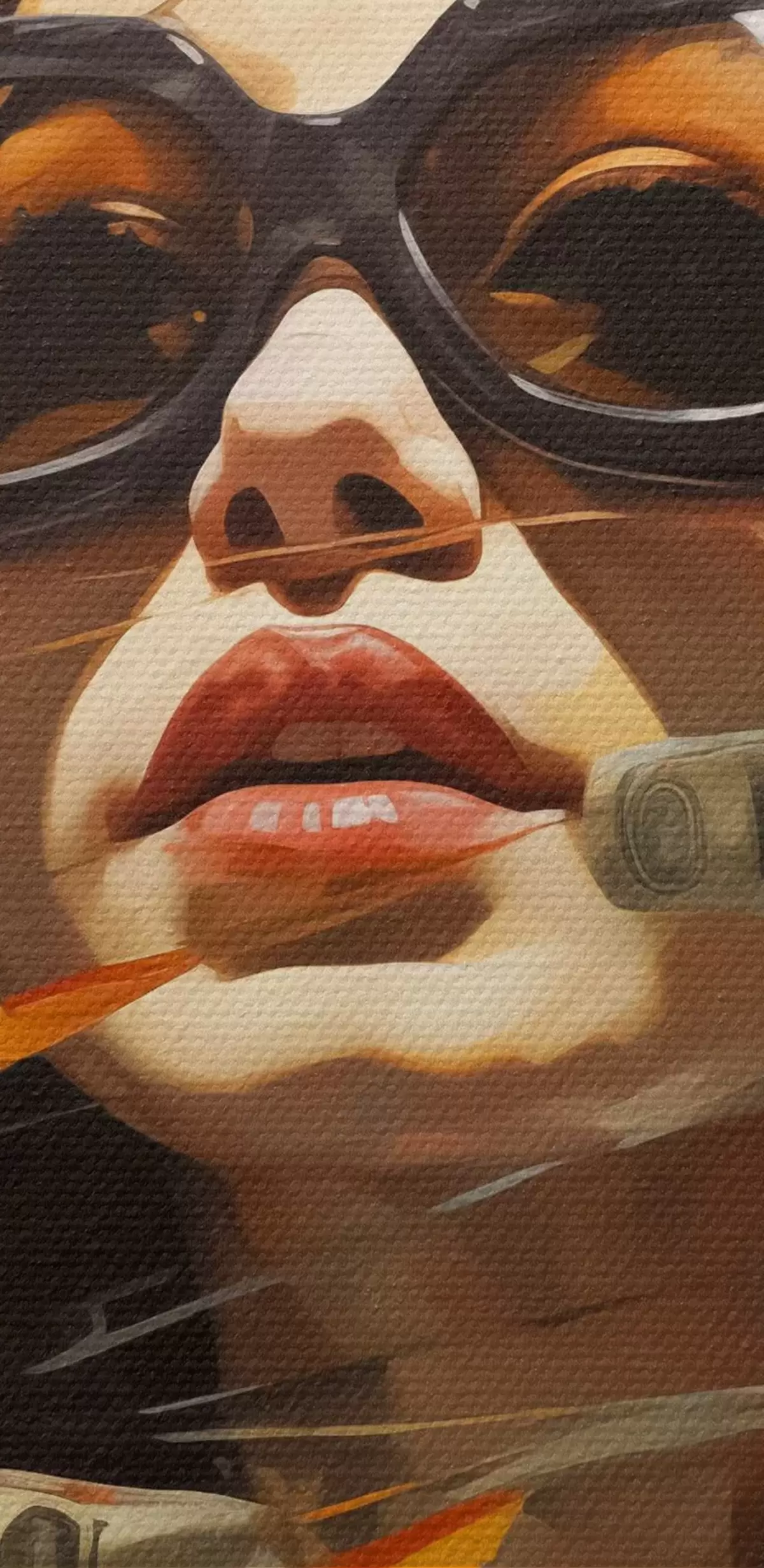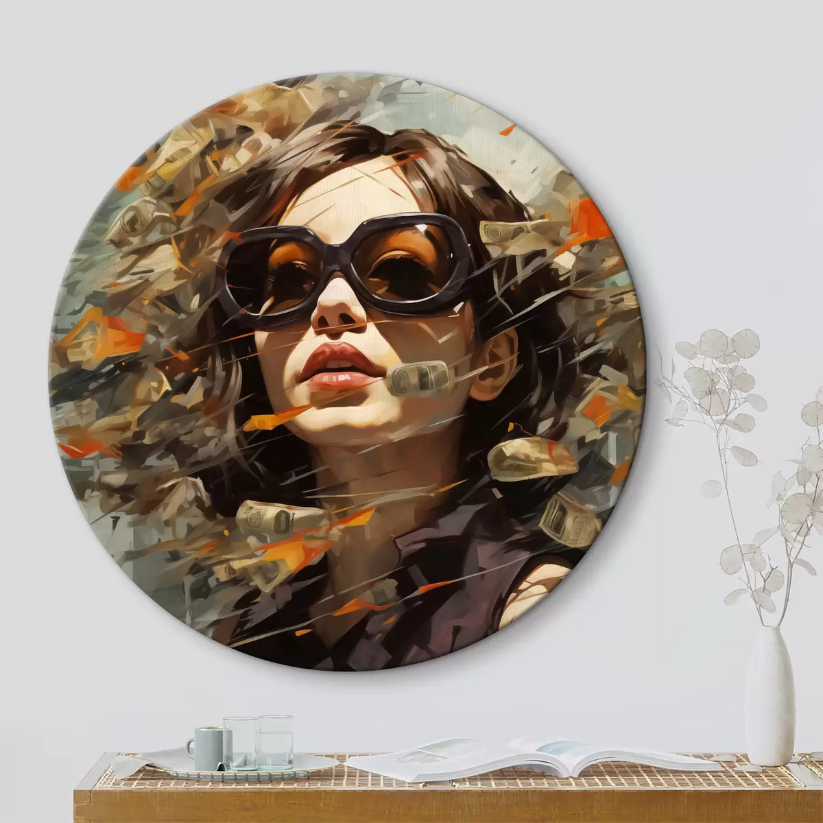 Picturi rotunde Fată în ochelari de soare înconjurată de bani abstracți Nr r40750