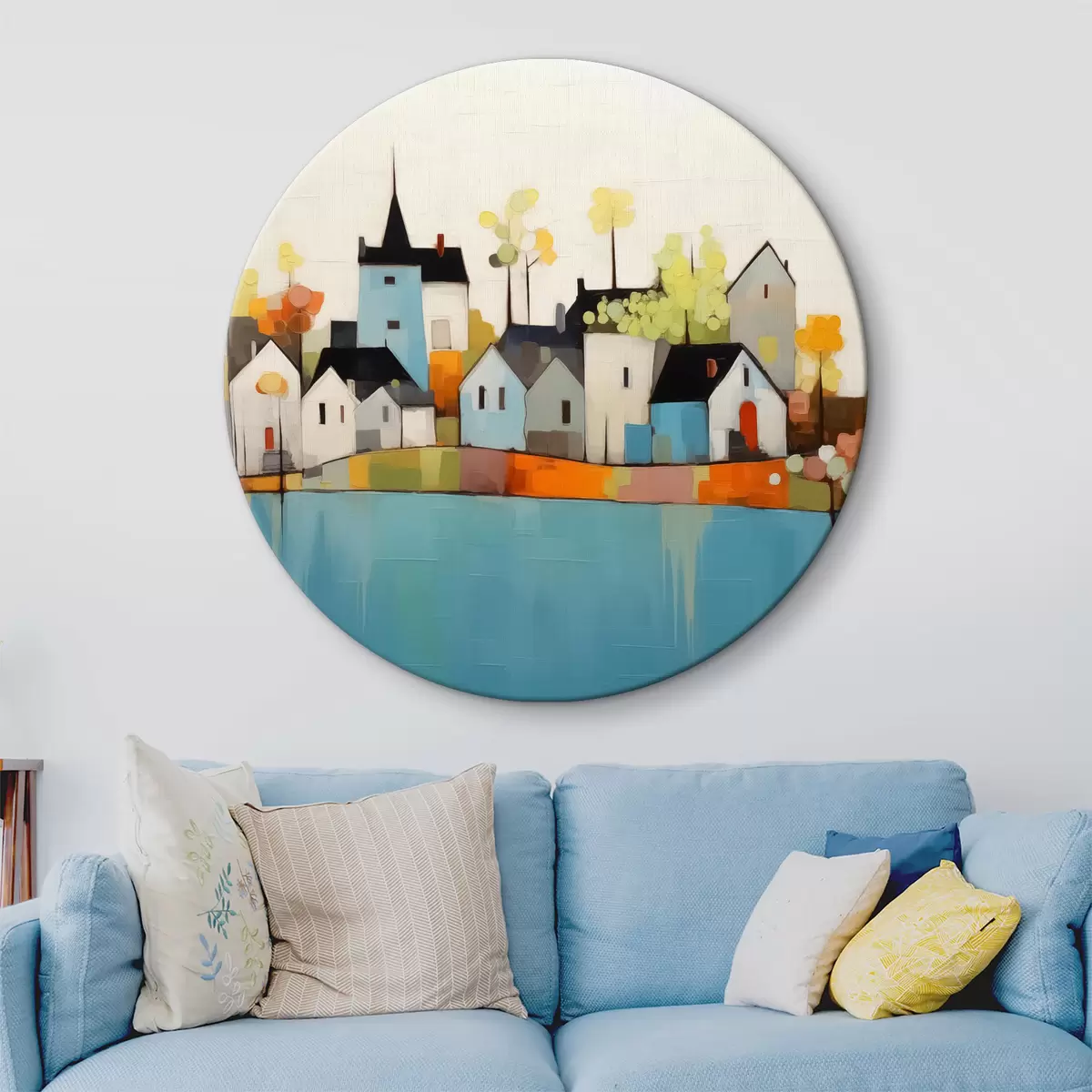 Picturi rotunde Abstract oraș și case, albastru, galben, roșu culori r40751