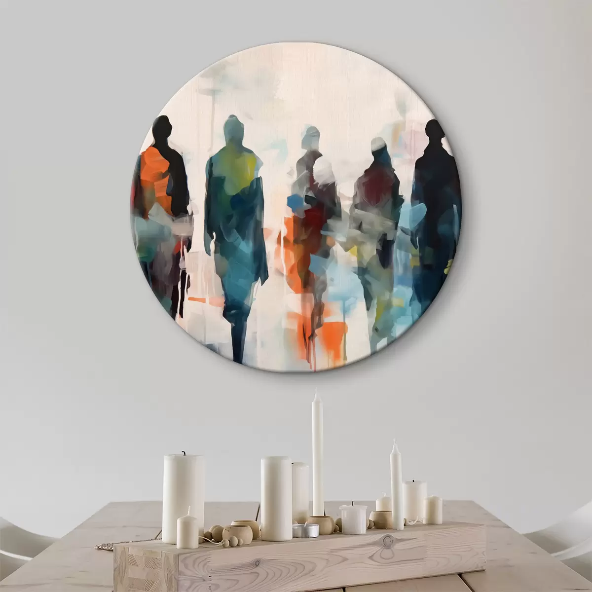 Picturi rotunde Siluete ale unui grup de oameni abstracte, imitație de lovituri de perie Nr r40752