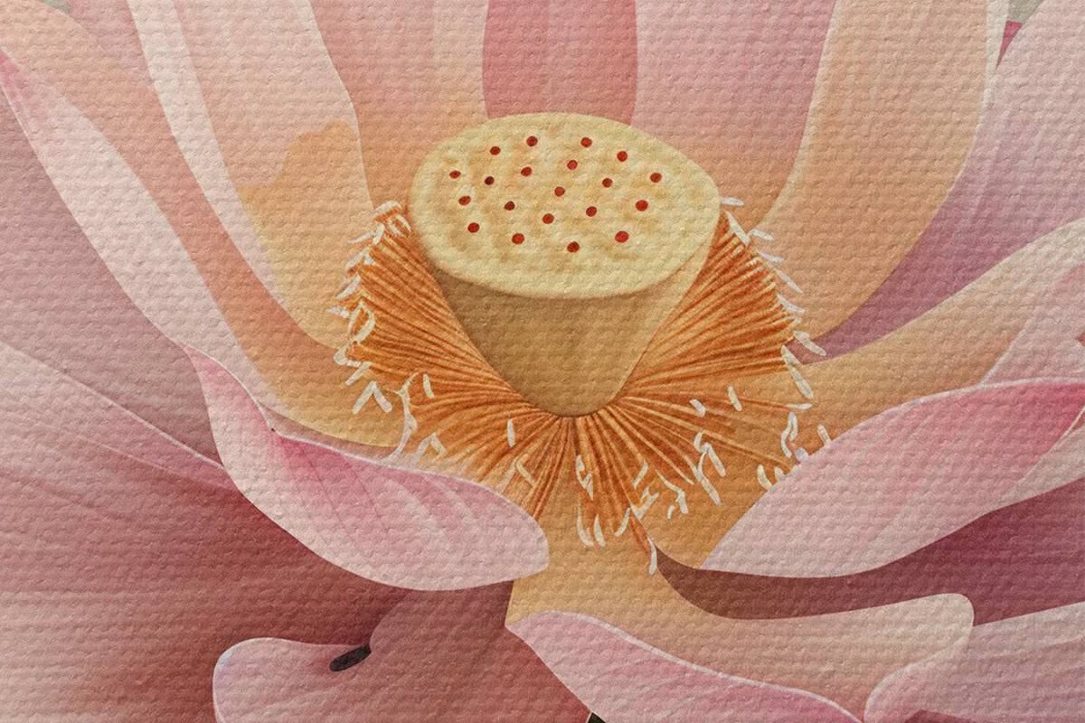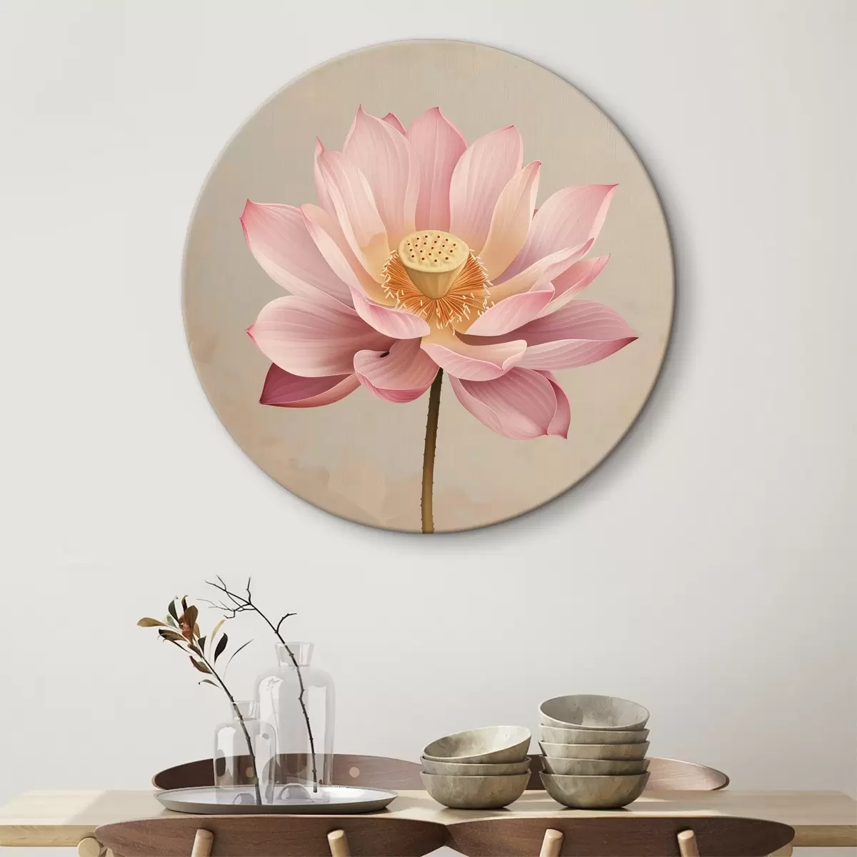 Picturi rotunde Lotus roz pe un fundal bej Nr r40769