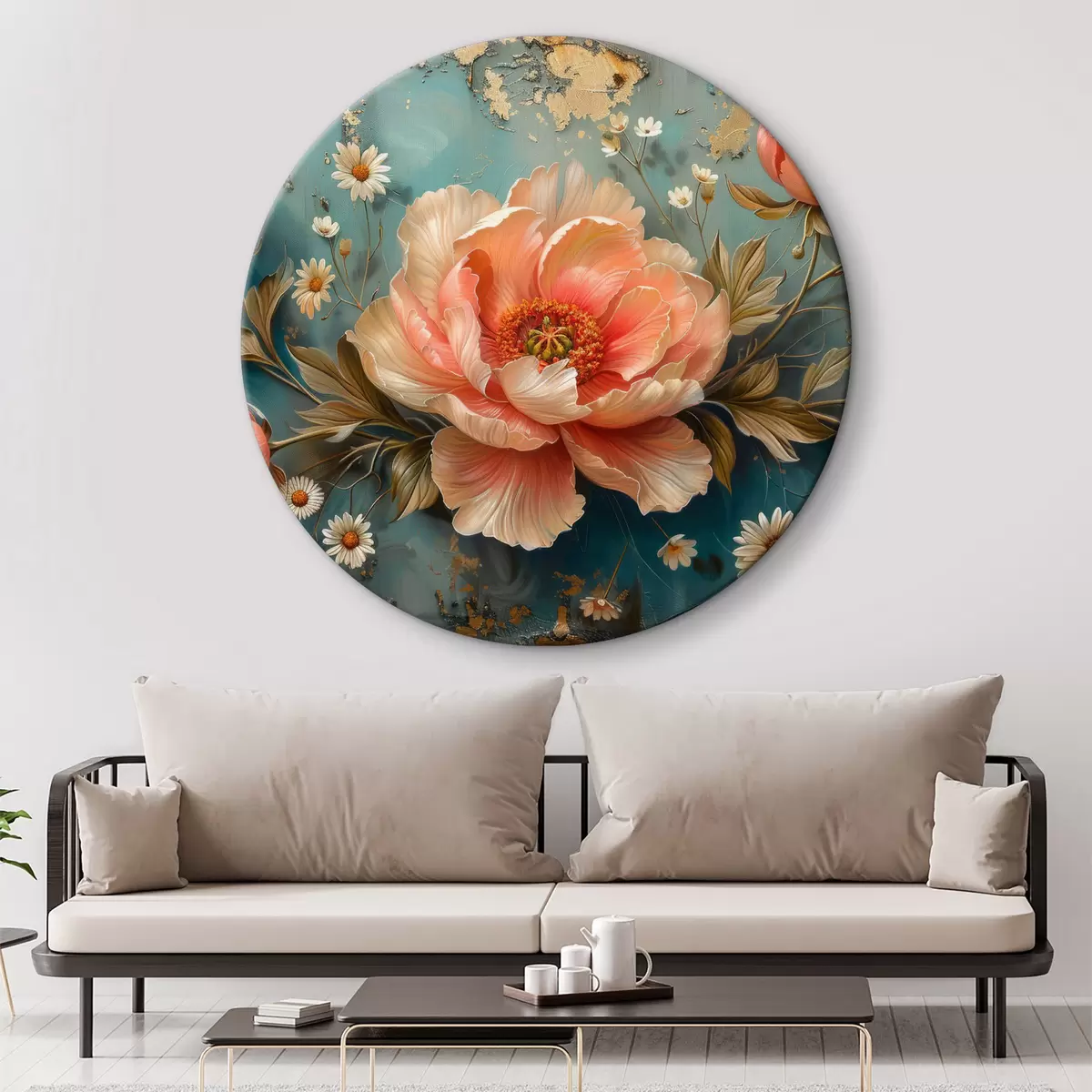 Picturi rotunde Trandafir, fundal turcoaz, flori mici Nr r40781