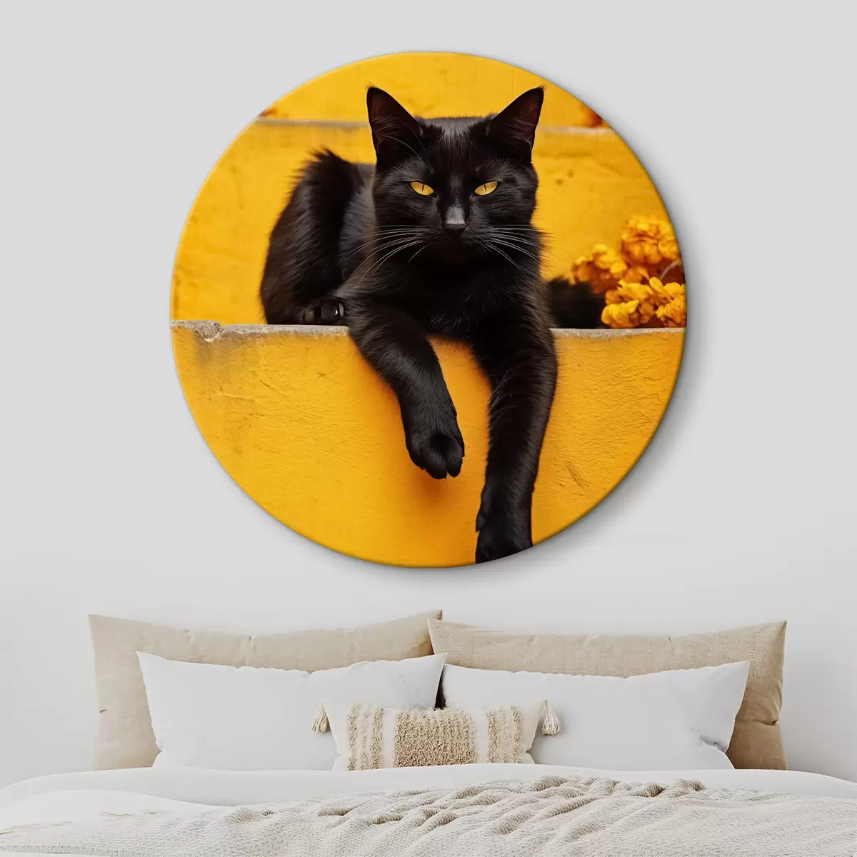 Picturi rotunde O pisică neagră zace pe scările galbene Nr r40798