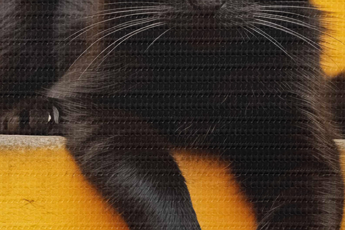 Picturi rotunde O pisică neagră zace pe scările galbene r40798