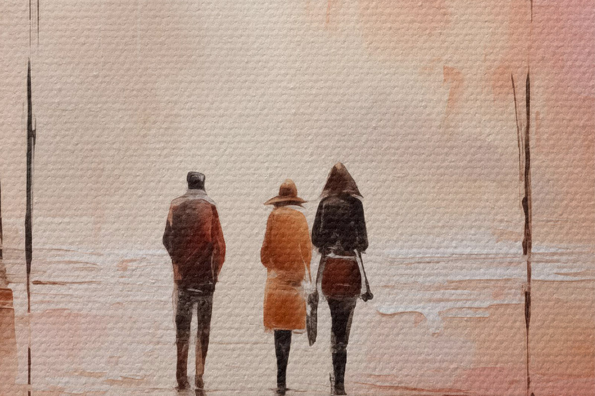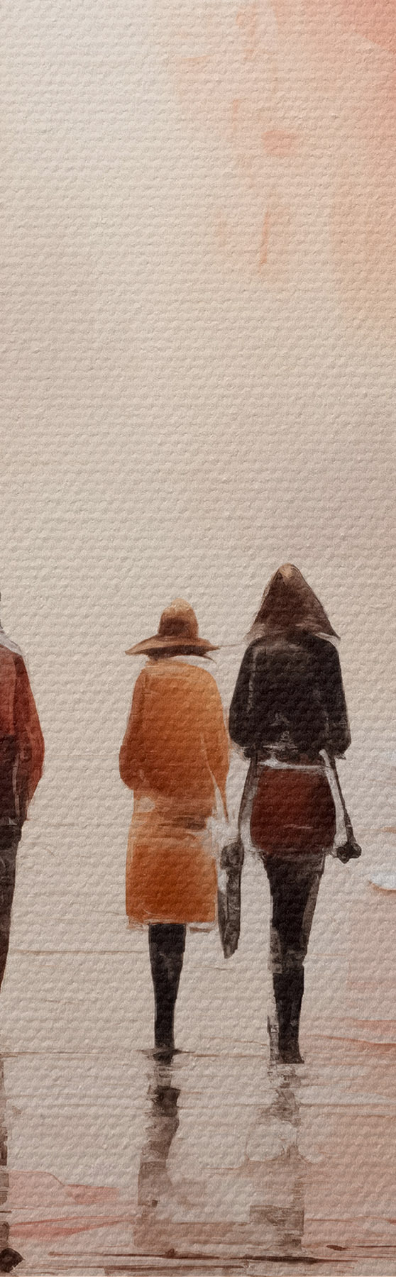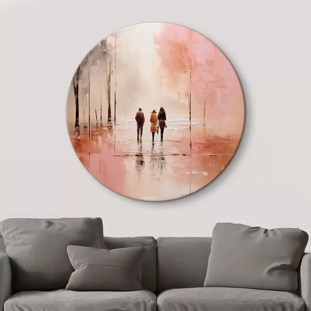 Picturi rotunde Oameni care se plimbă în parc abstracție, culoare roz roșu Nr r40802