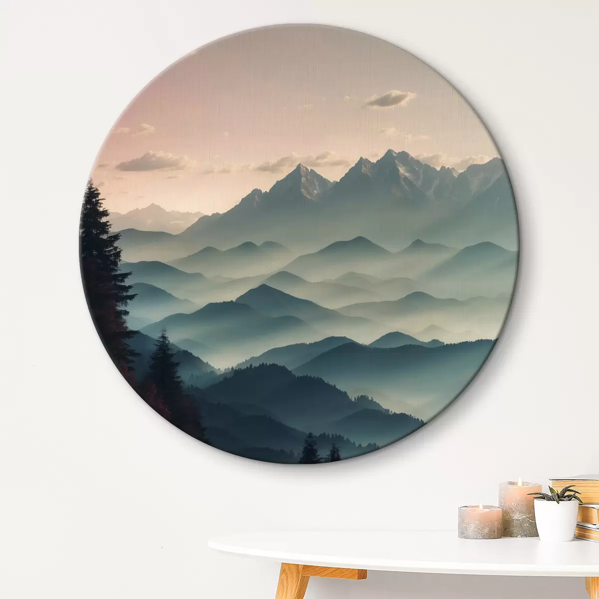 Picturi rotunde Vedere a munților în ceață r40851