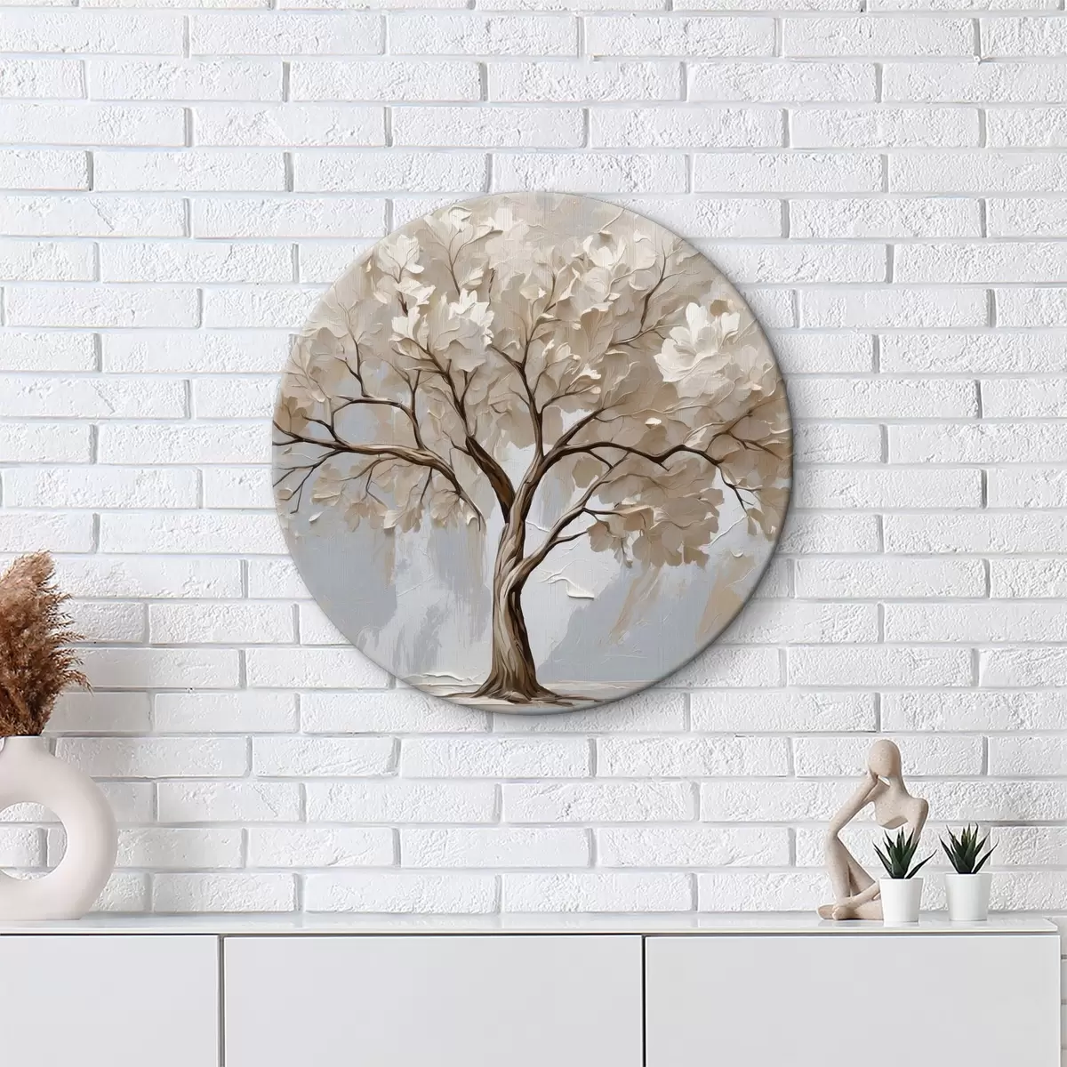 Picturi rotunde Copac alb pe fundal abstract de ulei r40860