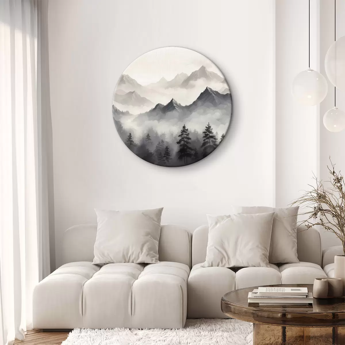 Picturi rotunde Pădure și munți în ceață Nr r40866