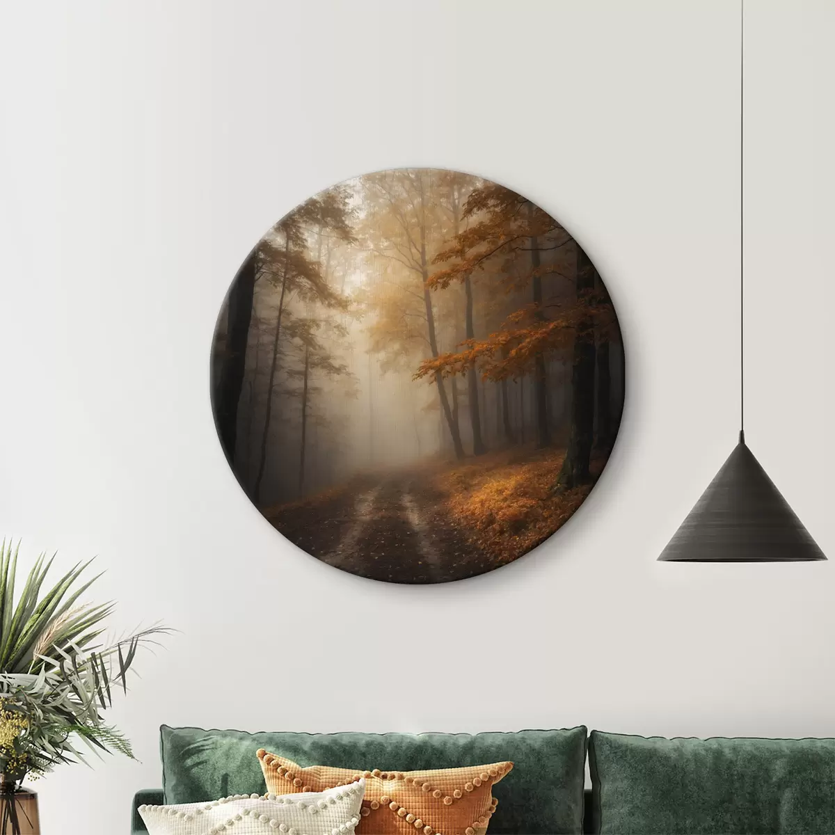 Picturi rotunde Drum în toamnă, pădure cețoasă Nr r40874