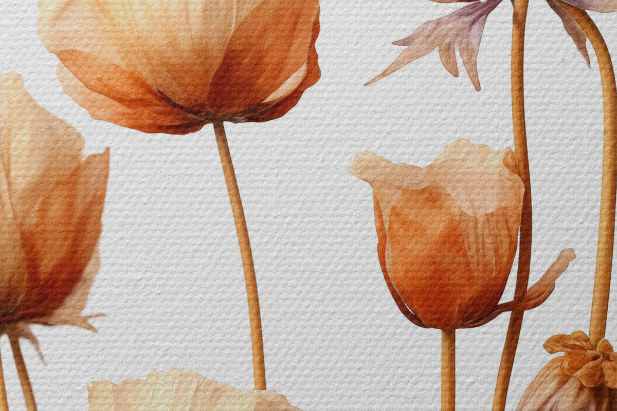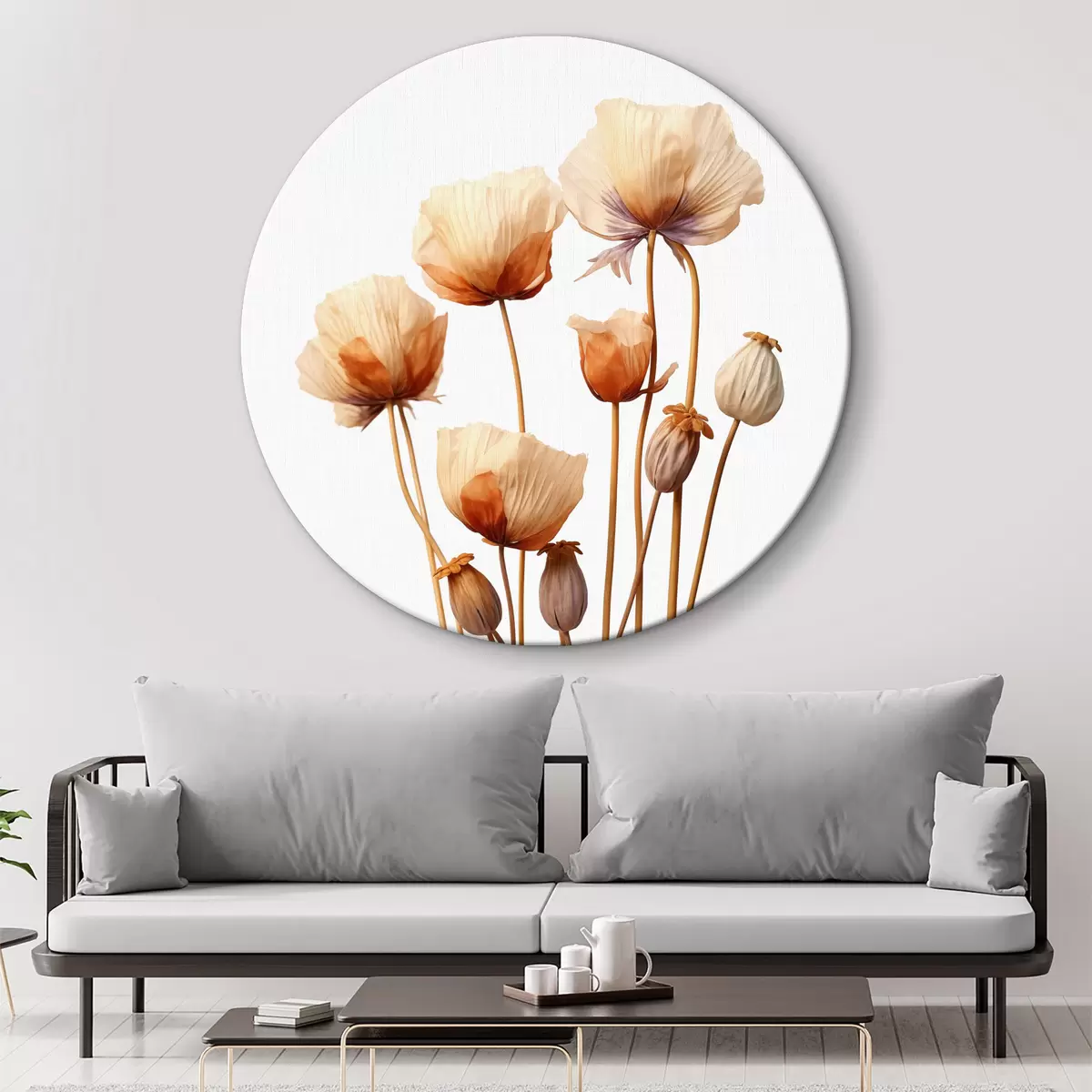 Picturi rotunde Poppy flori pe tulpini uscate minimalism r40883