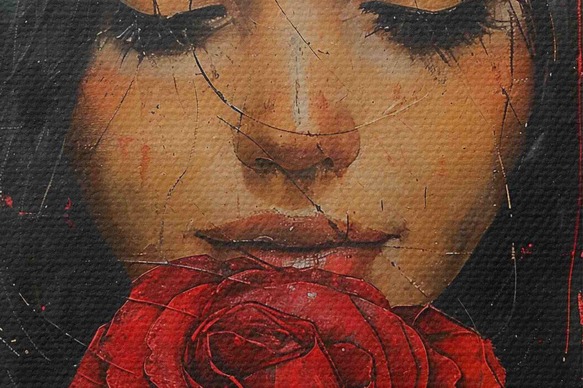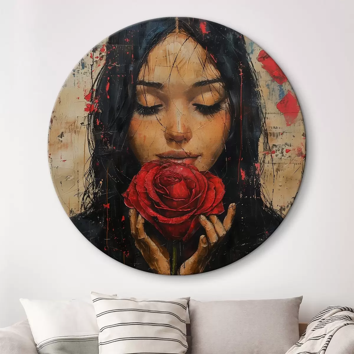 Picturi rotunde Fată cu un trandafir roșu r40898