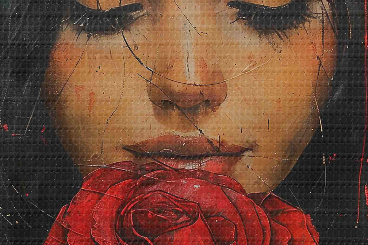 Picturi rotunde Fată cu un trandafir roșu Nr r40898