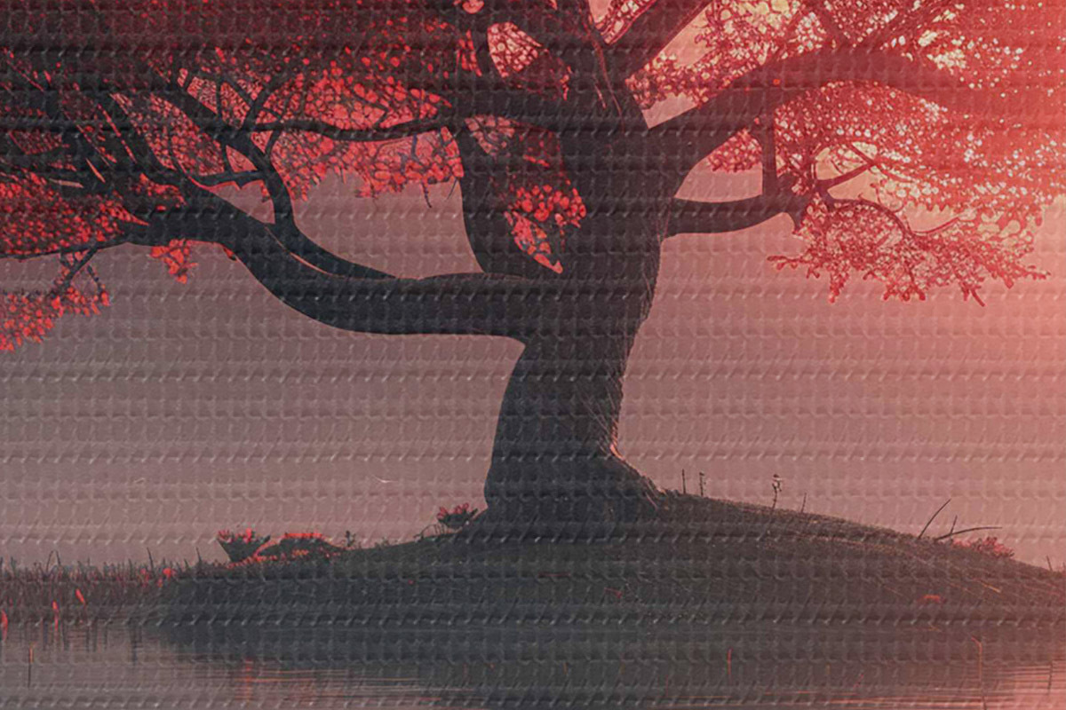 Picturi rotunde Copac lângă iaz la apus de soare r40934