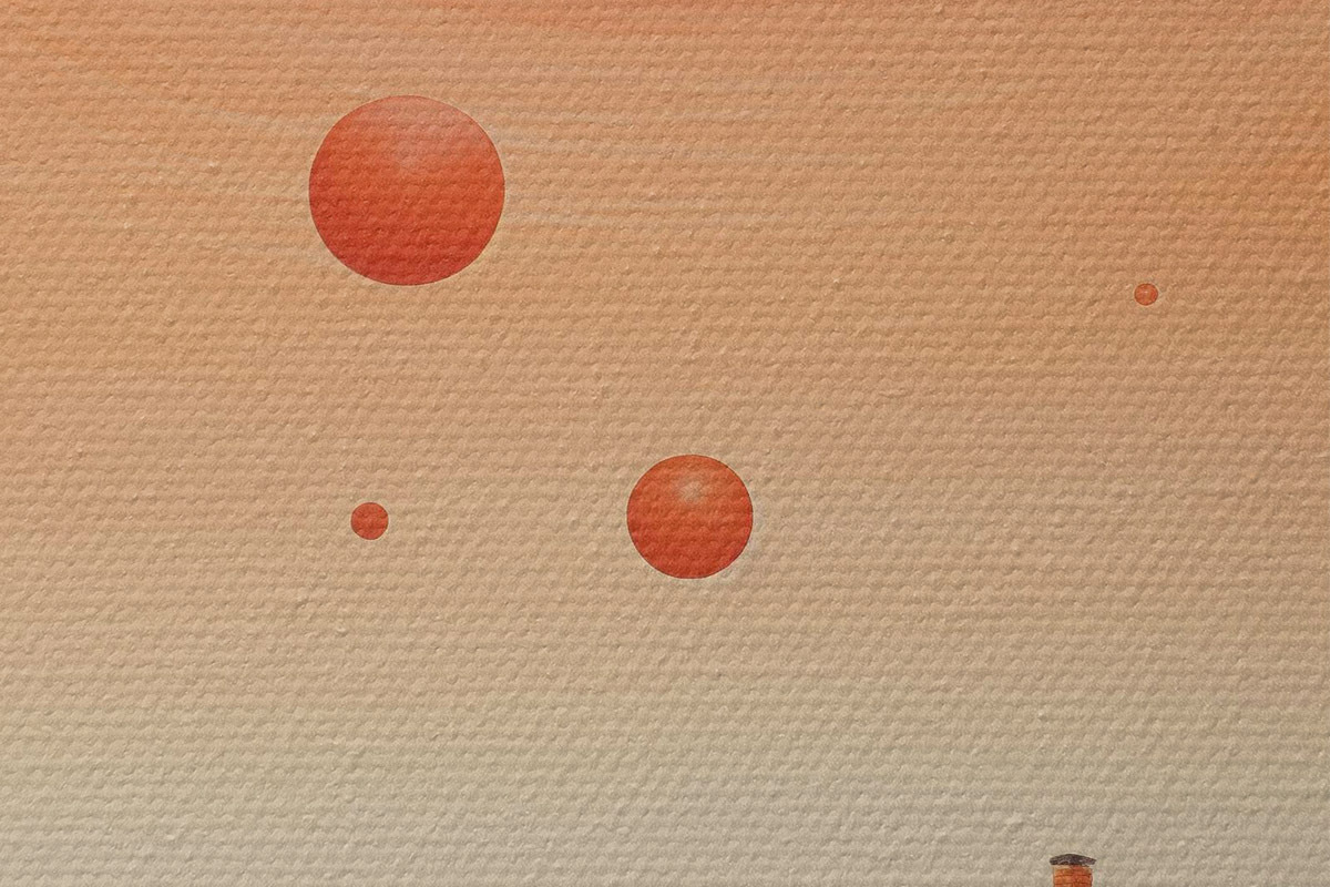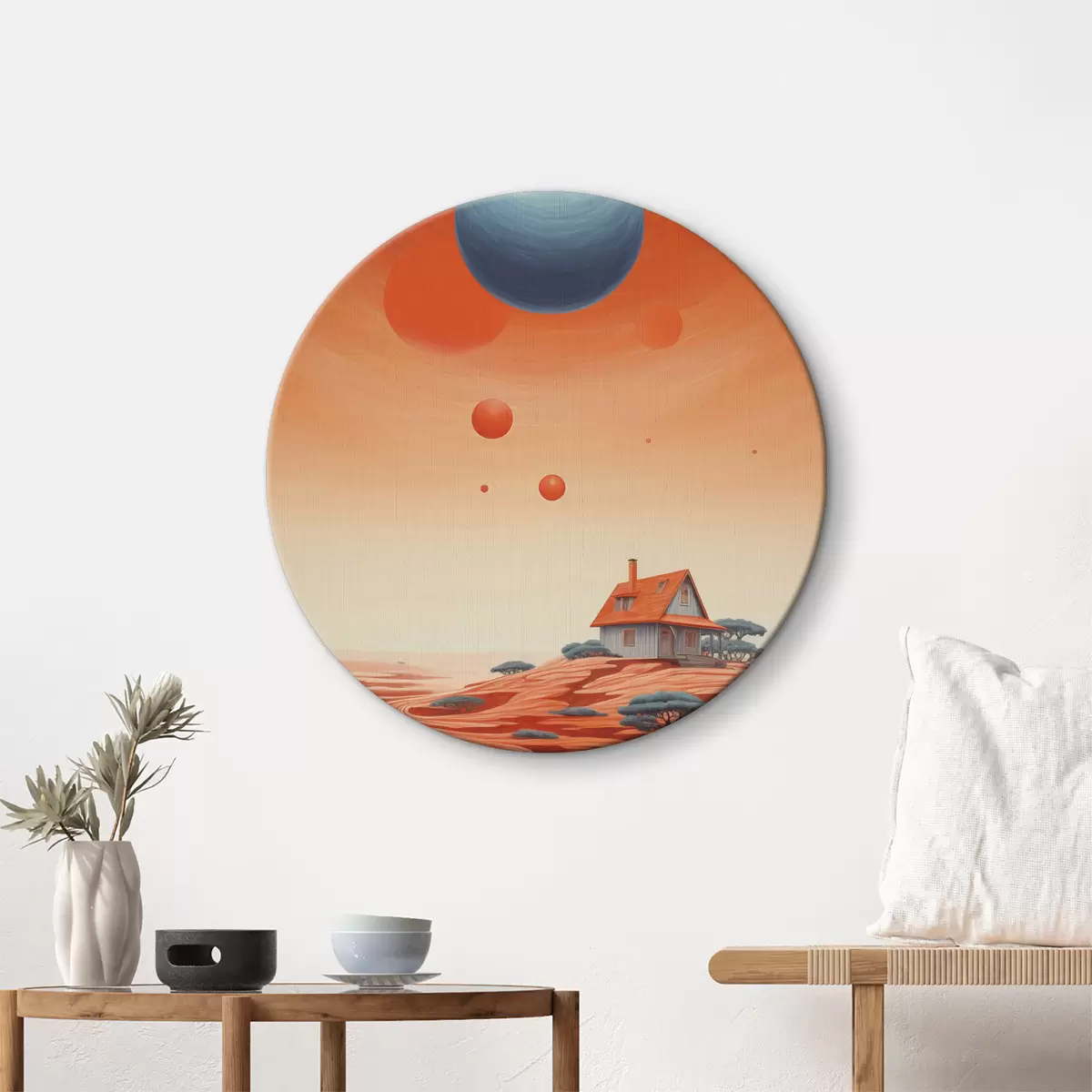 Picturi rotunde Desert cu o casă, artă futuristă, spațiu, planetă Nr r40944