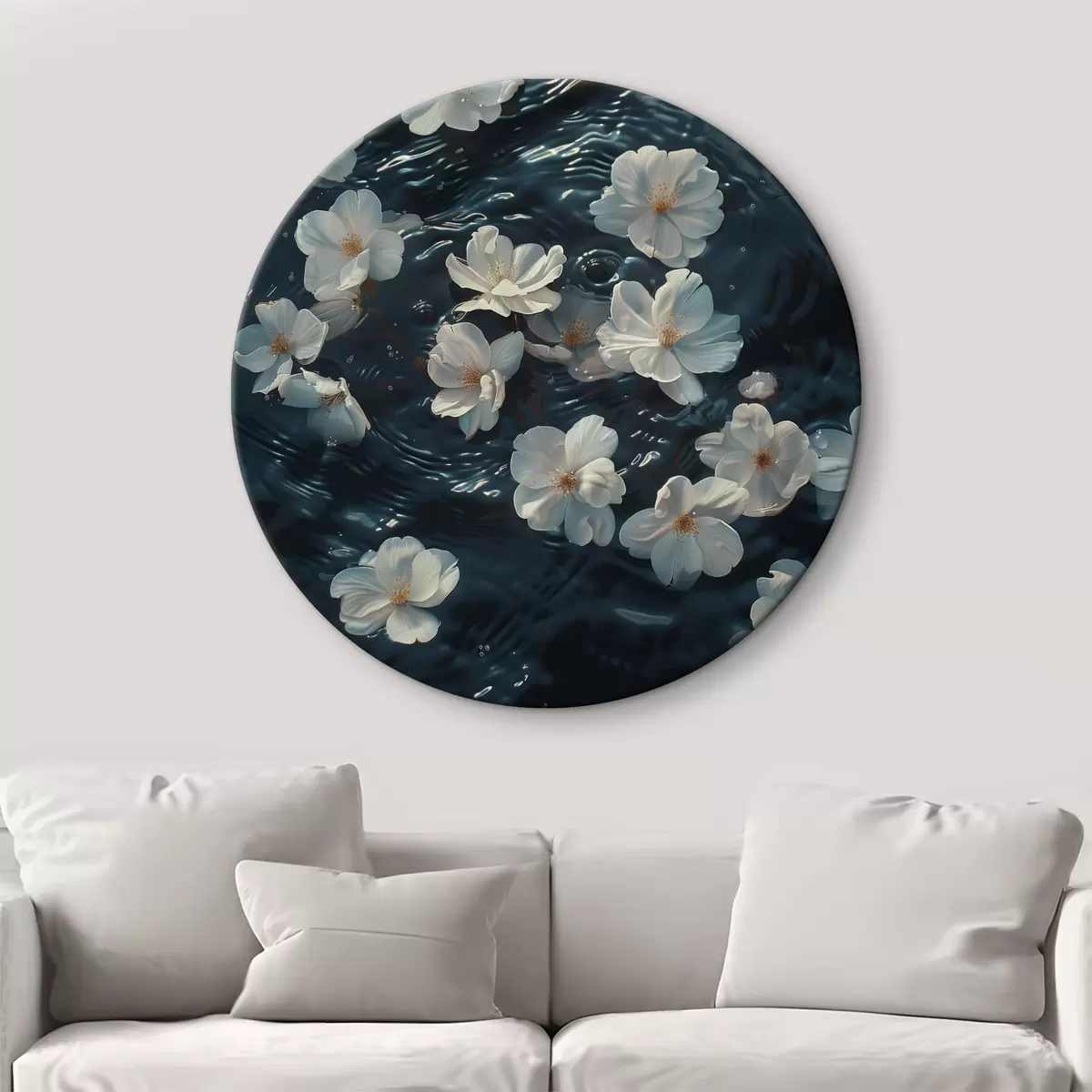 Picturi rotunde Flori albe de iasomie plutind pe apă Nr r40960