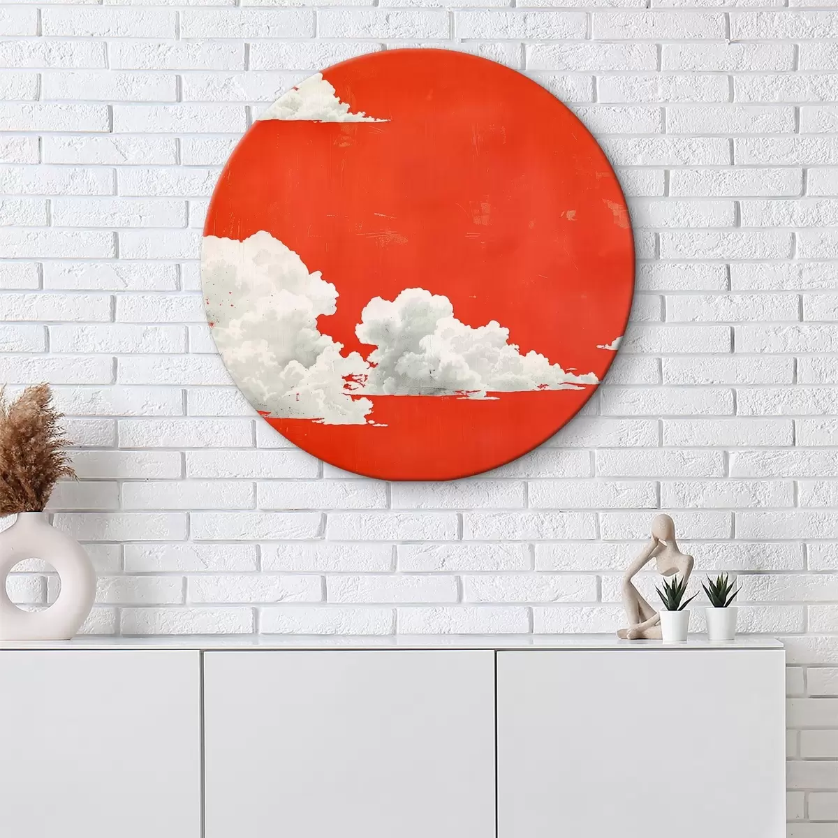 Picturi rotunde Cer roșu cu nori albi Nr r40974