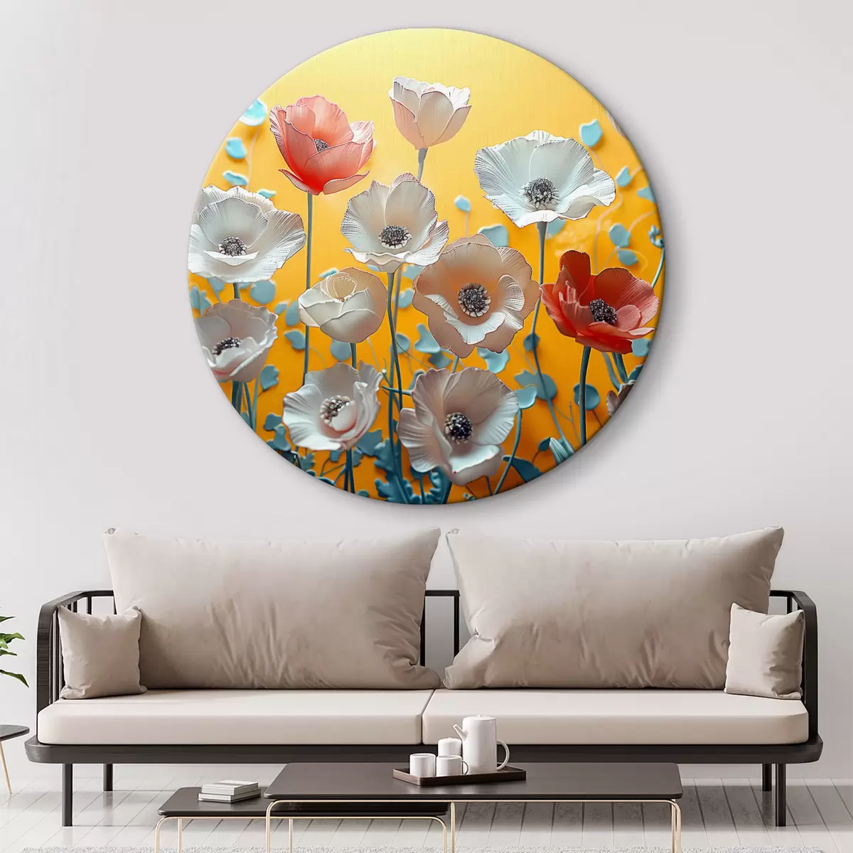 Picturi rotunde Bujori albi și roșii pe un fundal galben Nr r40975