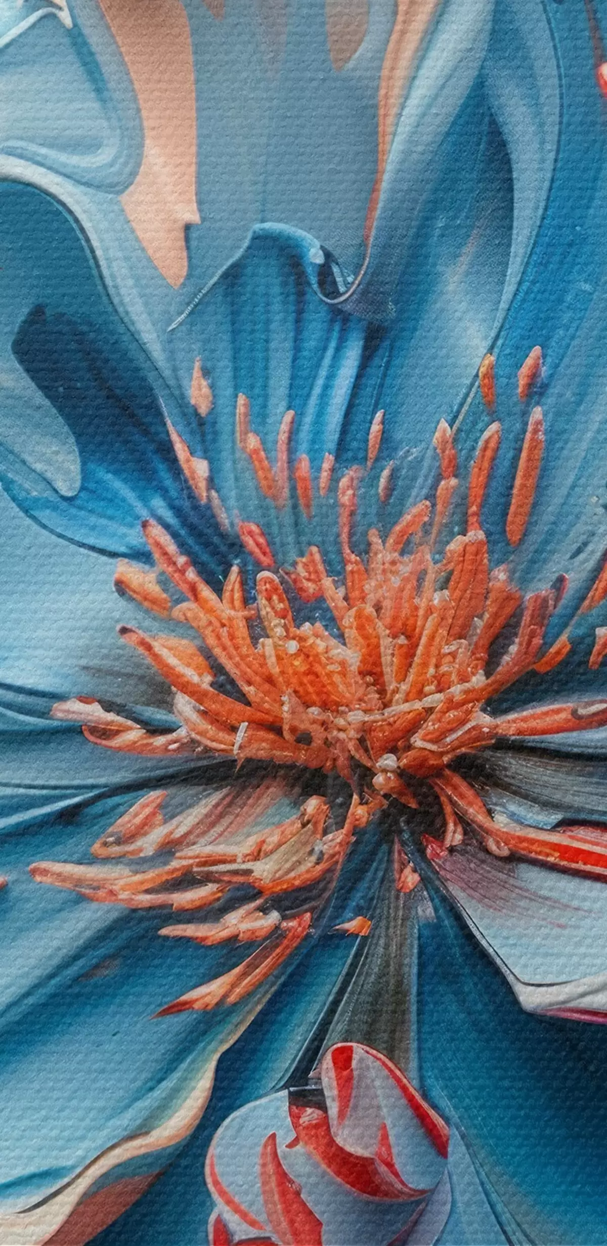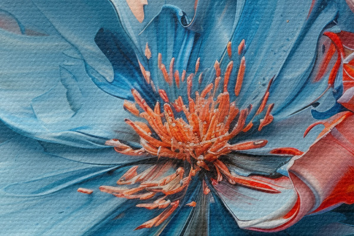 Picturi rotunde Mac magic cu petale voluminoase în nuanțe de piersică și albastru Nr r40992