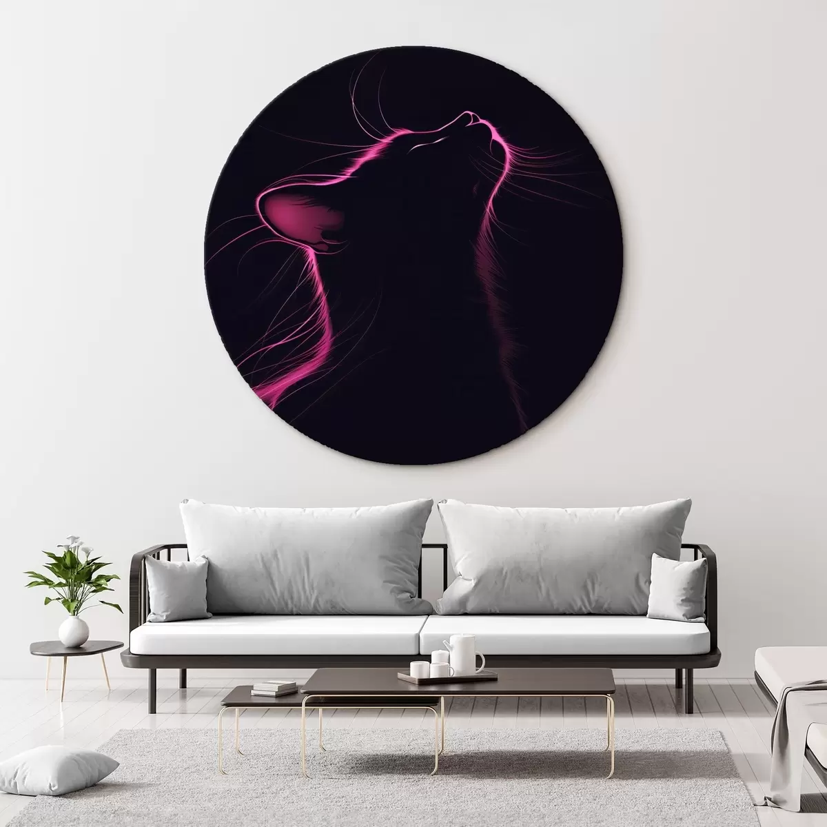 Picturi rotunde Pisică roz neon pe un fundal negru r40994
