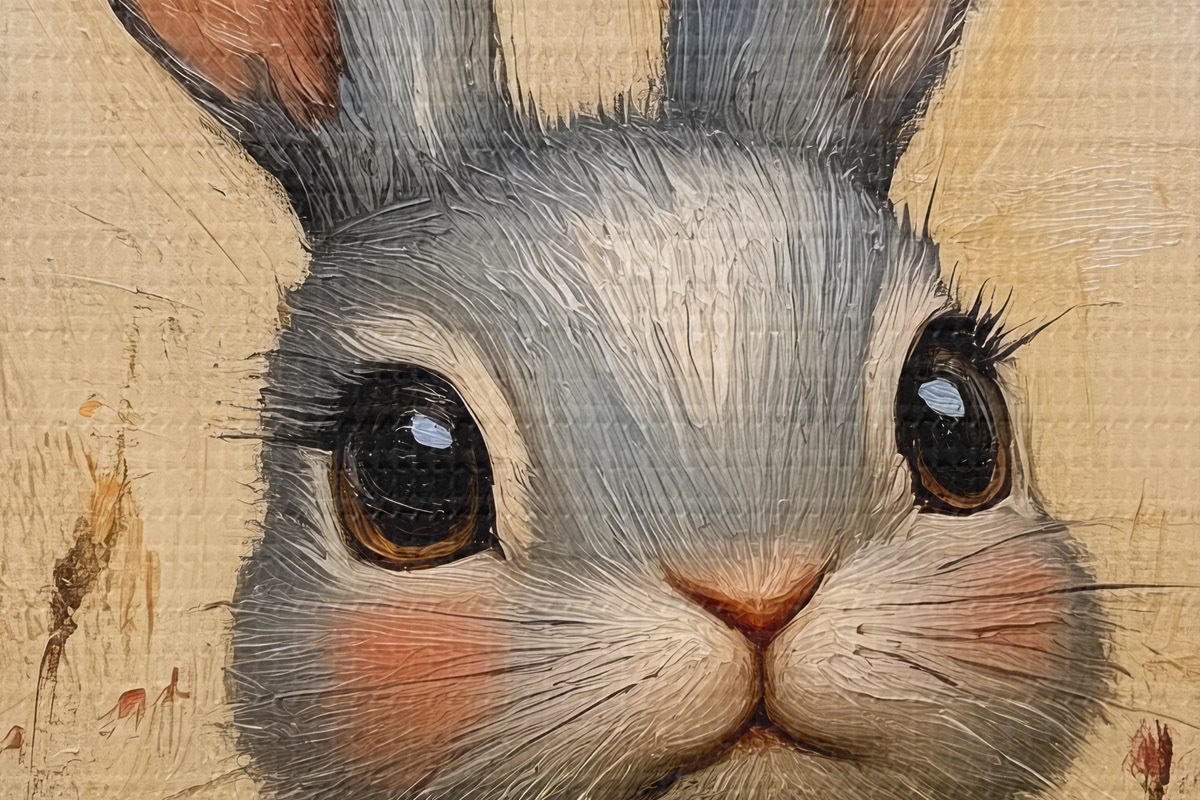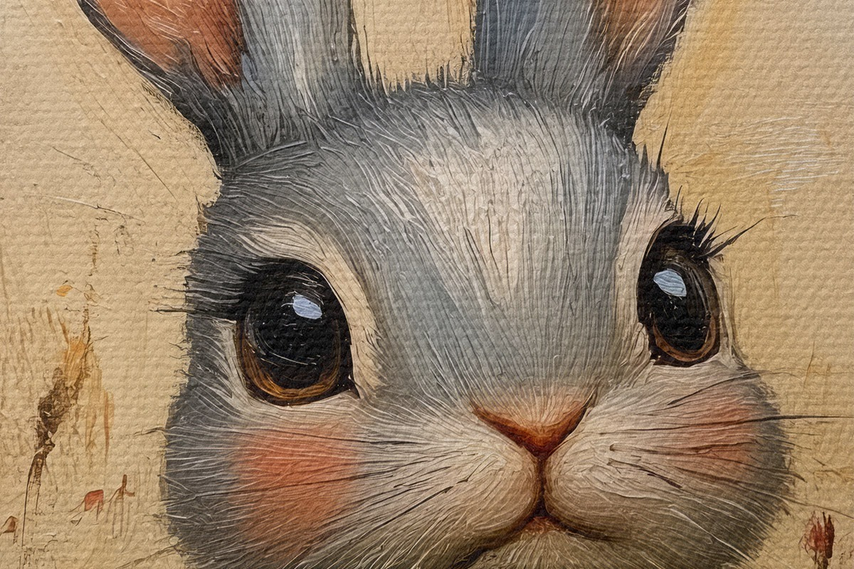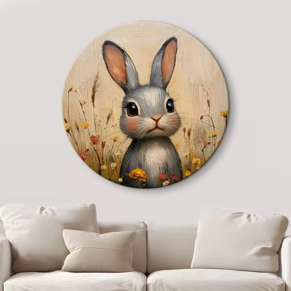 Picturi rotunde Iepure în câmp printre flori cu tușe de pensulă Nr r40999