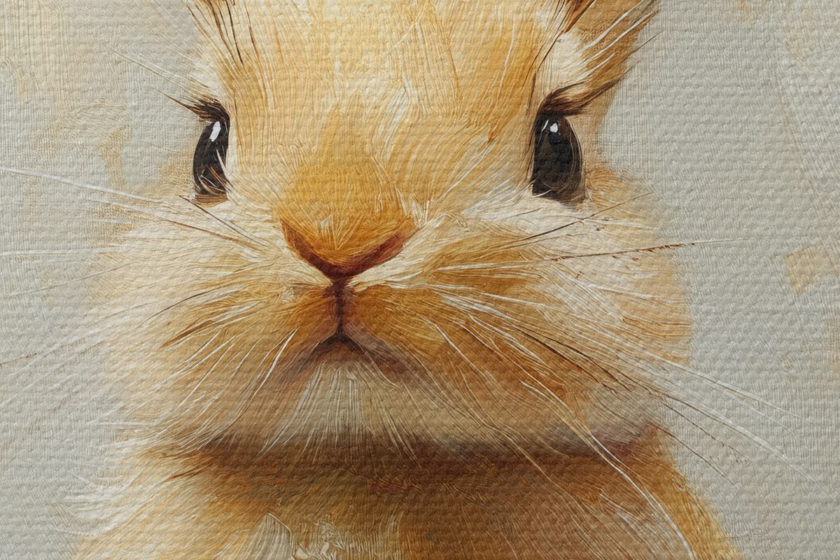 Picturi rotunde Un iepuraș bej pe un fundal deschis cu lovituri de perie îndrăznețe r41000