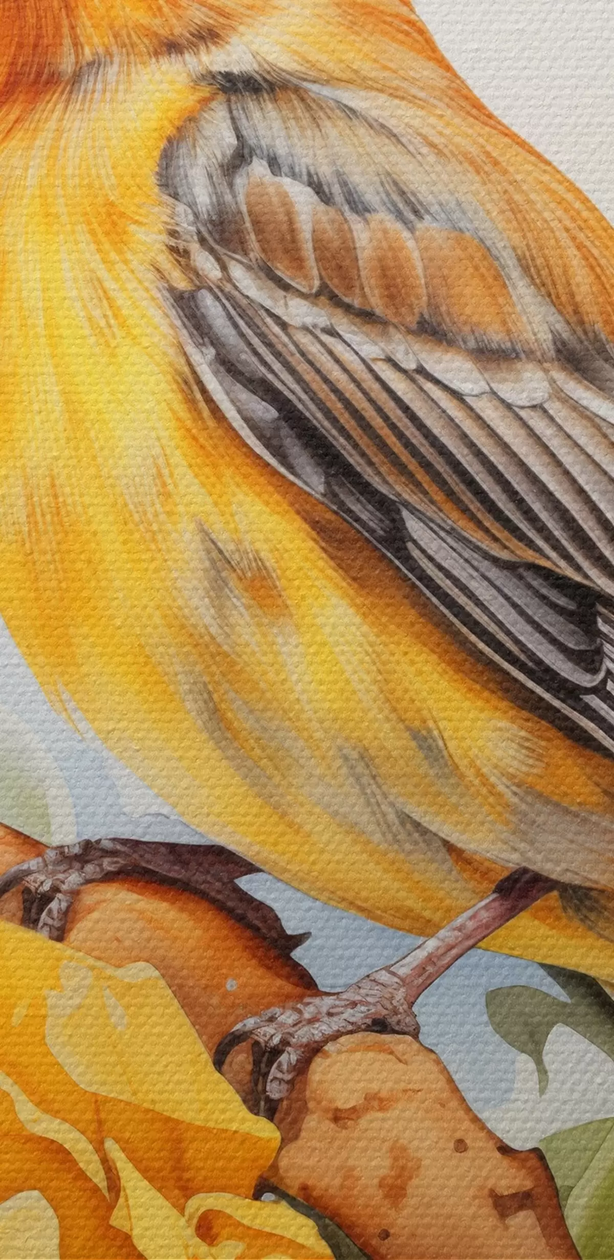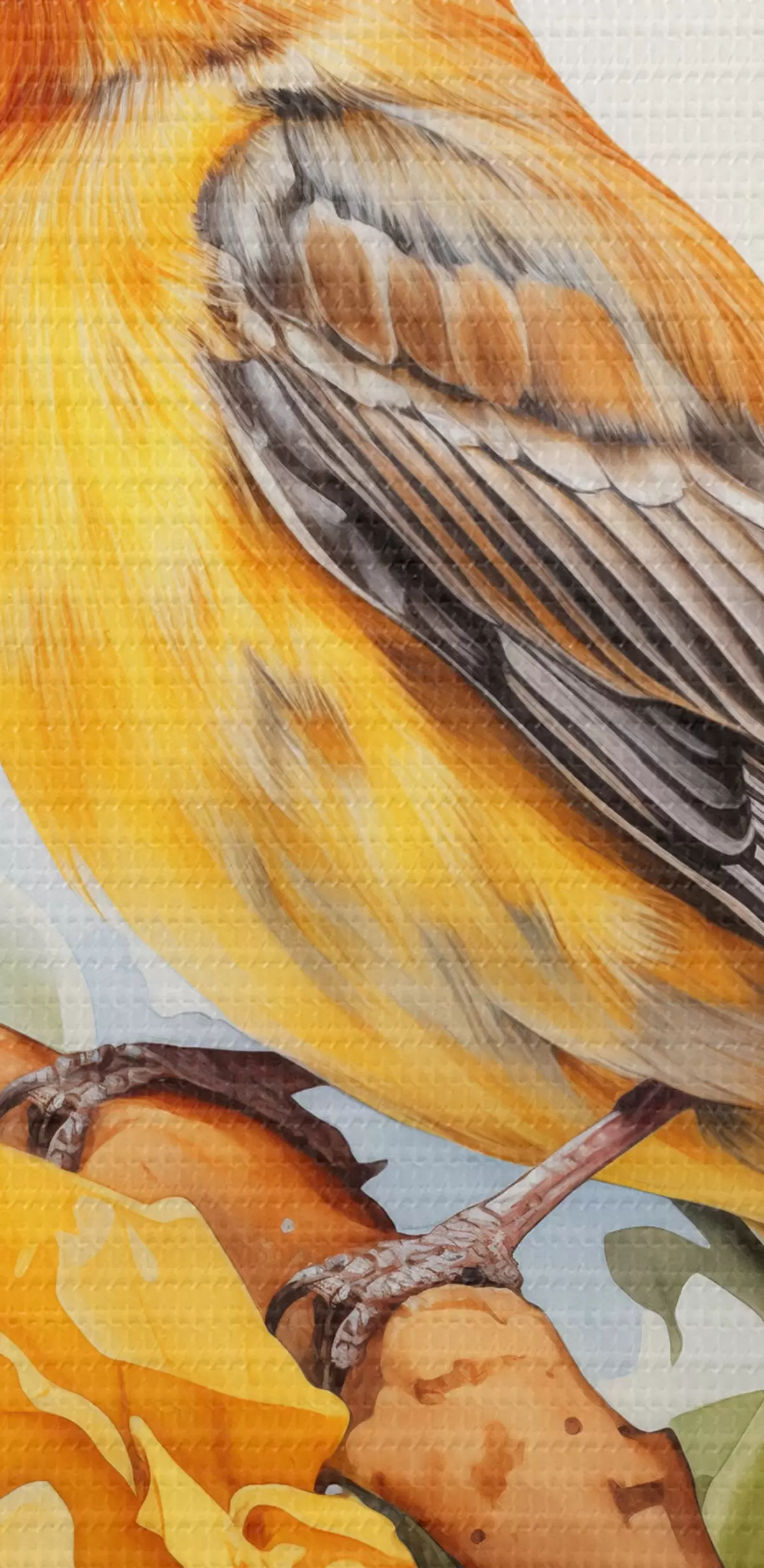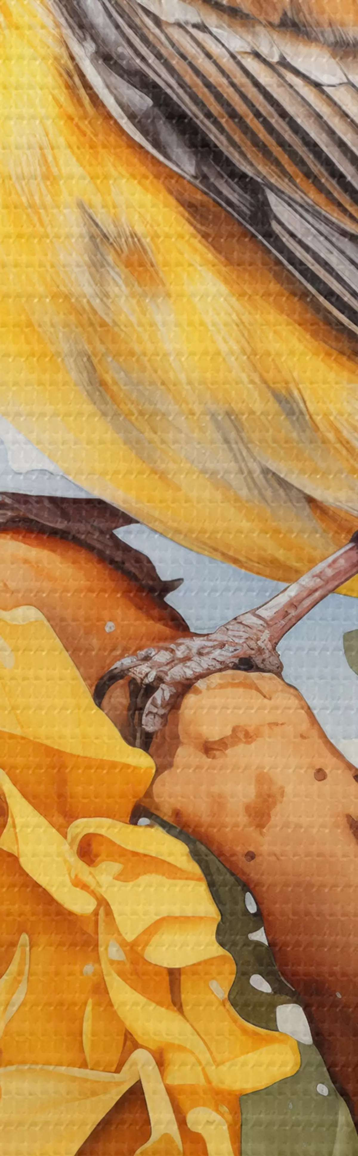 Picturi rotunde Pasăre galbenă așezată pe o floarea-soarelui acuarelă Nr r41015