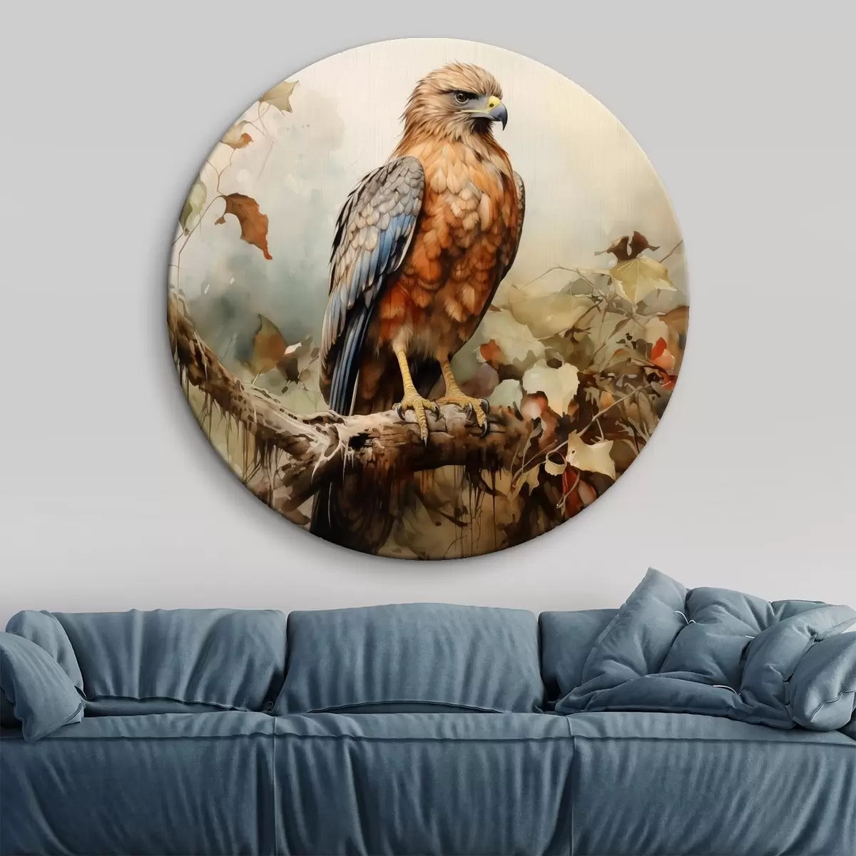 Picturi rotunde Șoim stând pe o ramură acuarelă Nr r41021