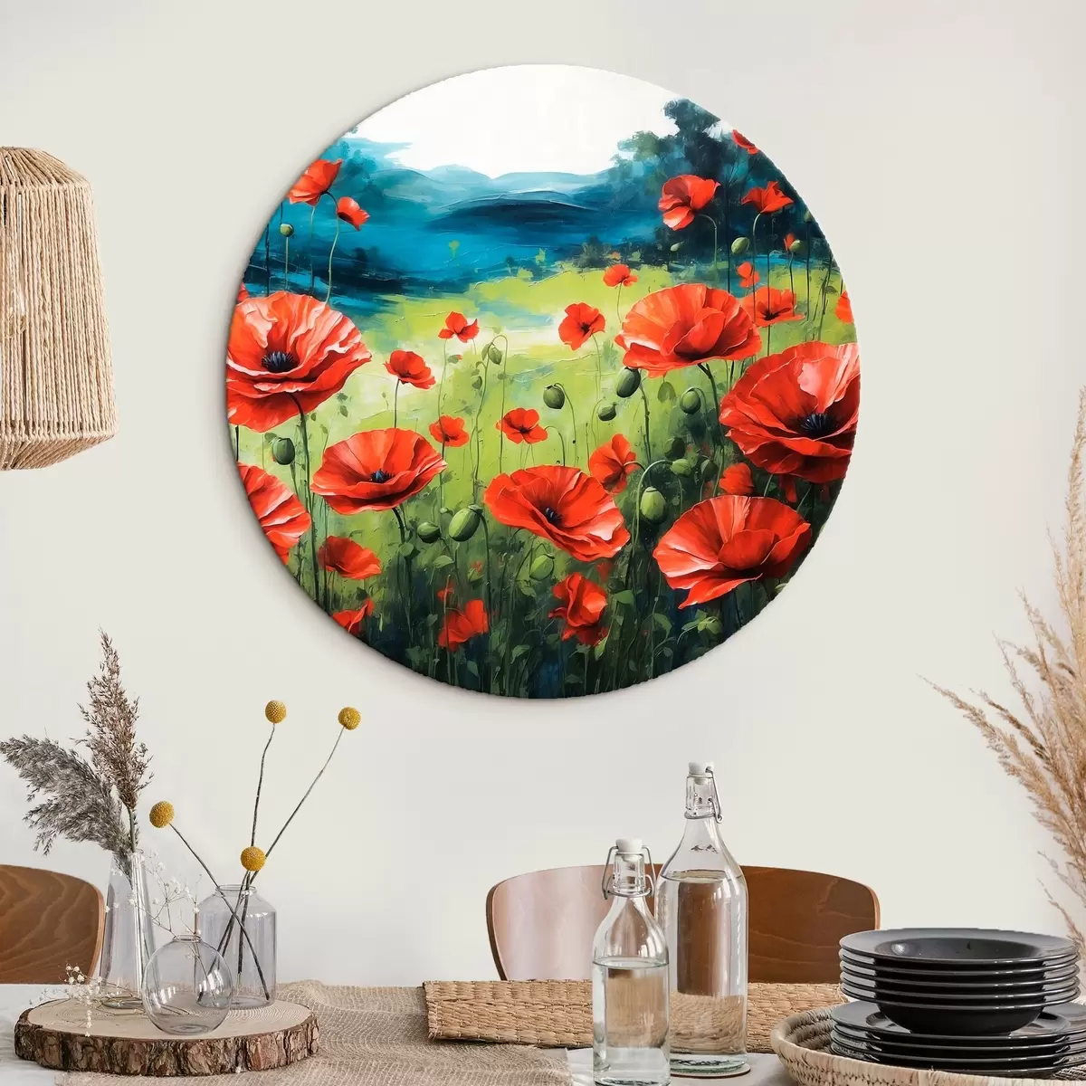 Picturi rotunde Poppies pe un fundal acrilic r41035