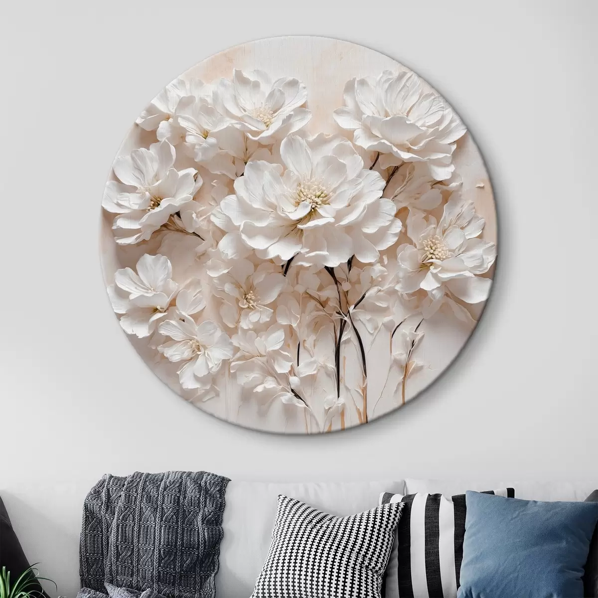 Picturi rotunde Flori albe pe un fundal alb și portocaliu Nr r41042