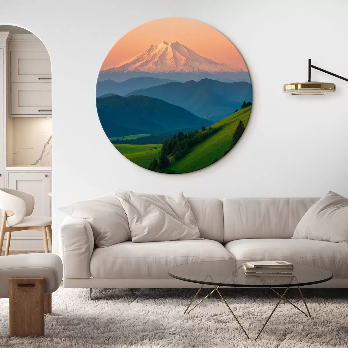 Picturi rotunde Vedere a unui vulcan calm, acoperit de zăpadă Nr r41046