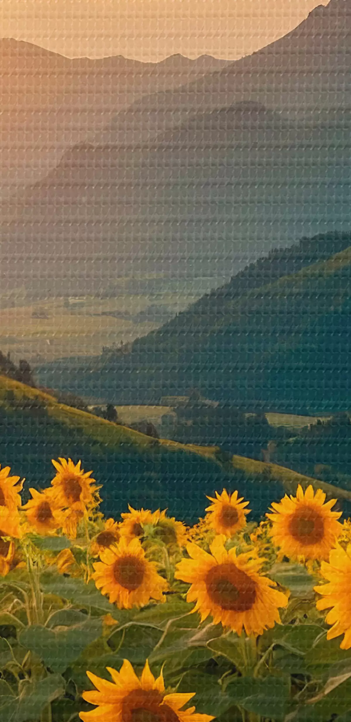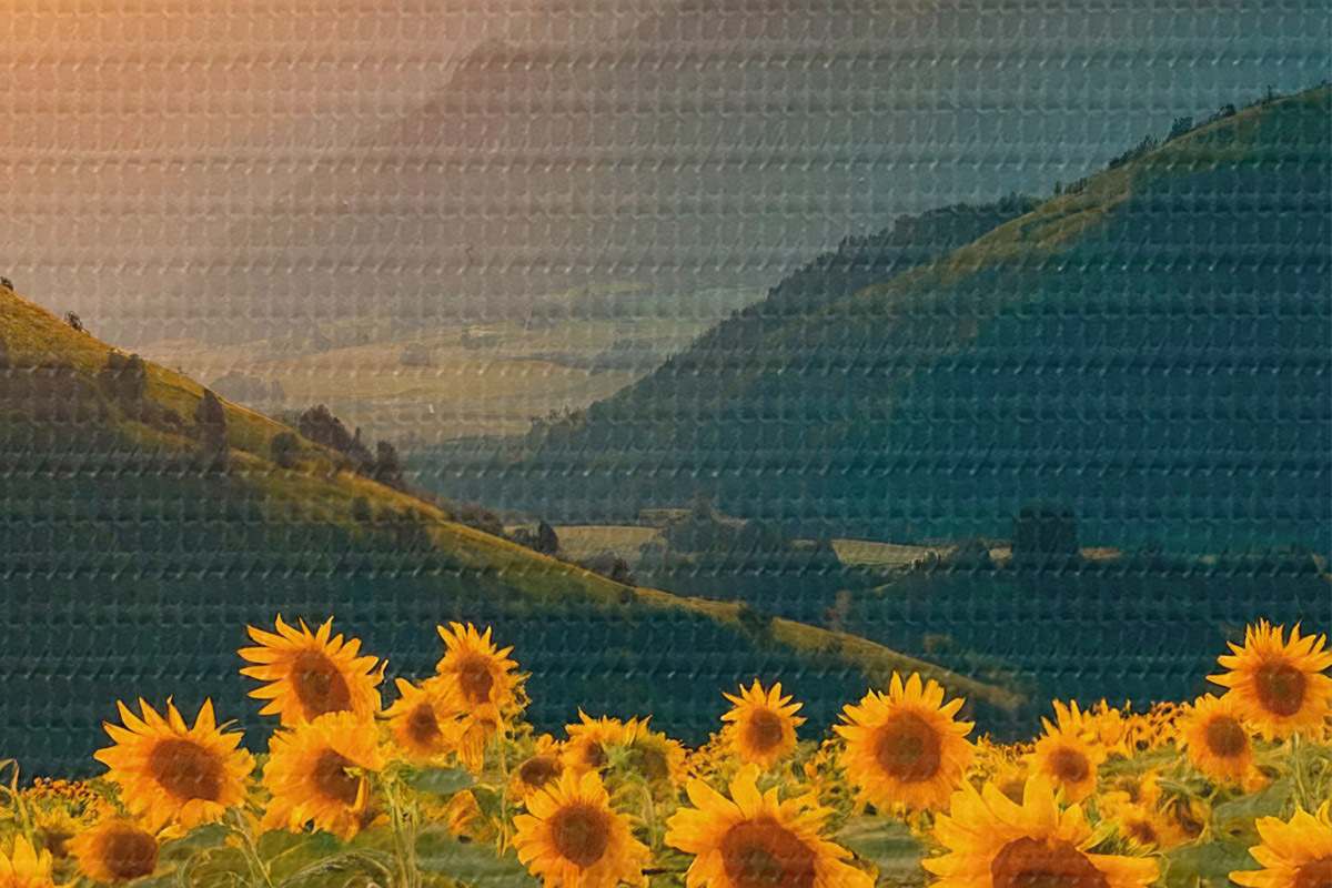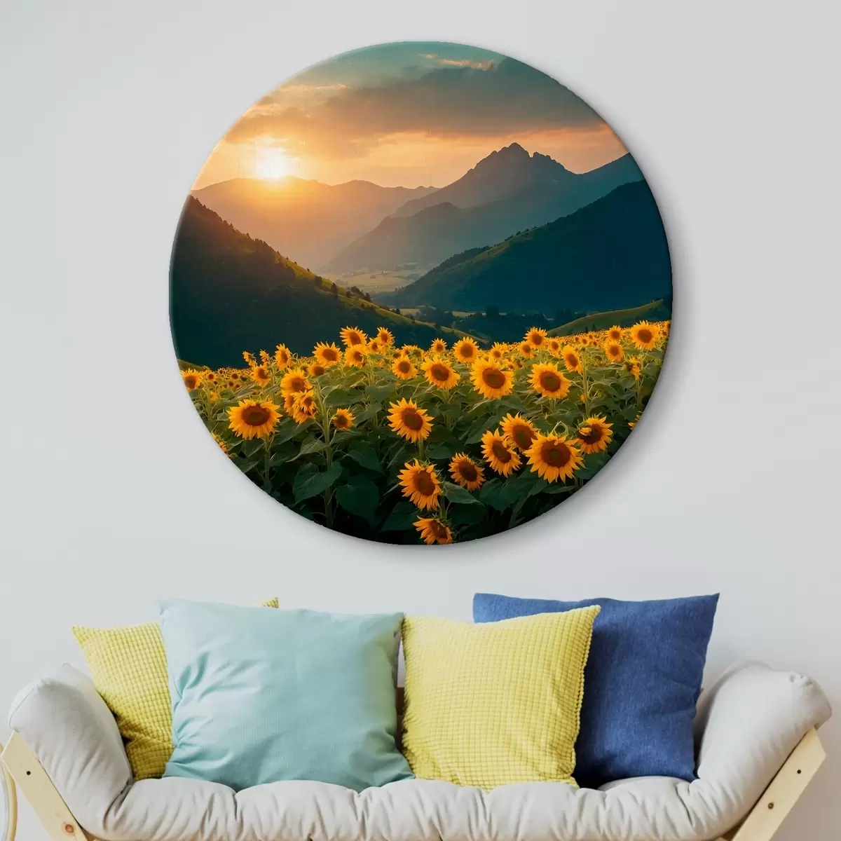 Picturi rotunde Floarea-soarelui pe fundalul munților Nr r41049