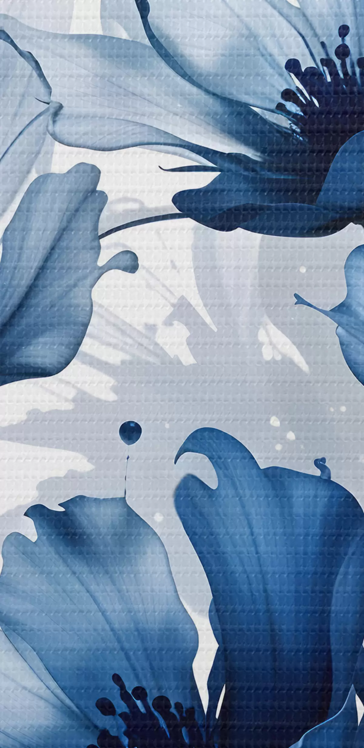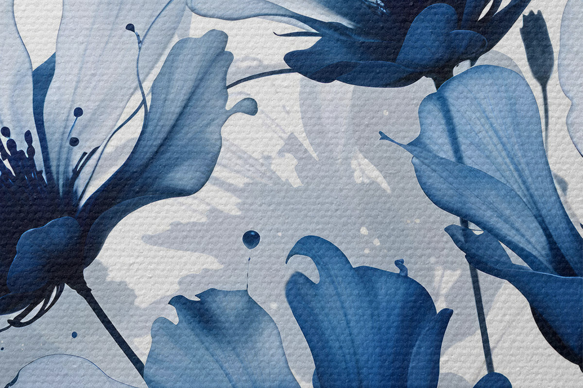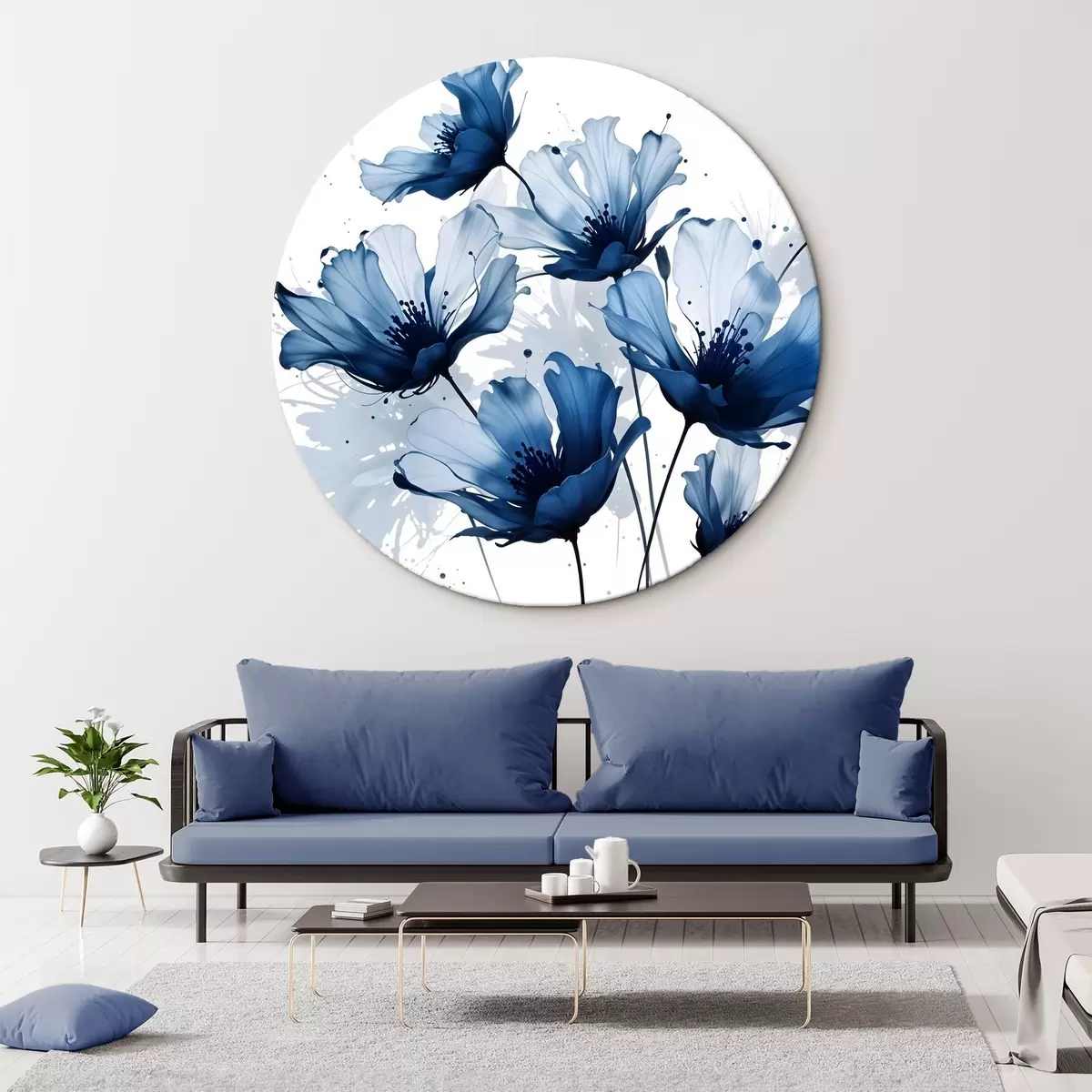 Picturi rotunde Flori mari abstracte albastre și albe cu petale moi neclare pe un fundal alb Nr r41082