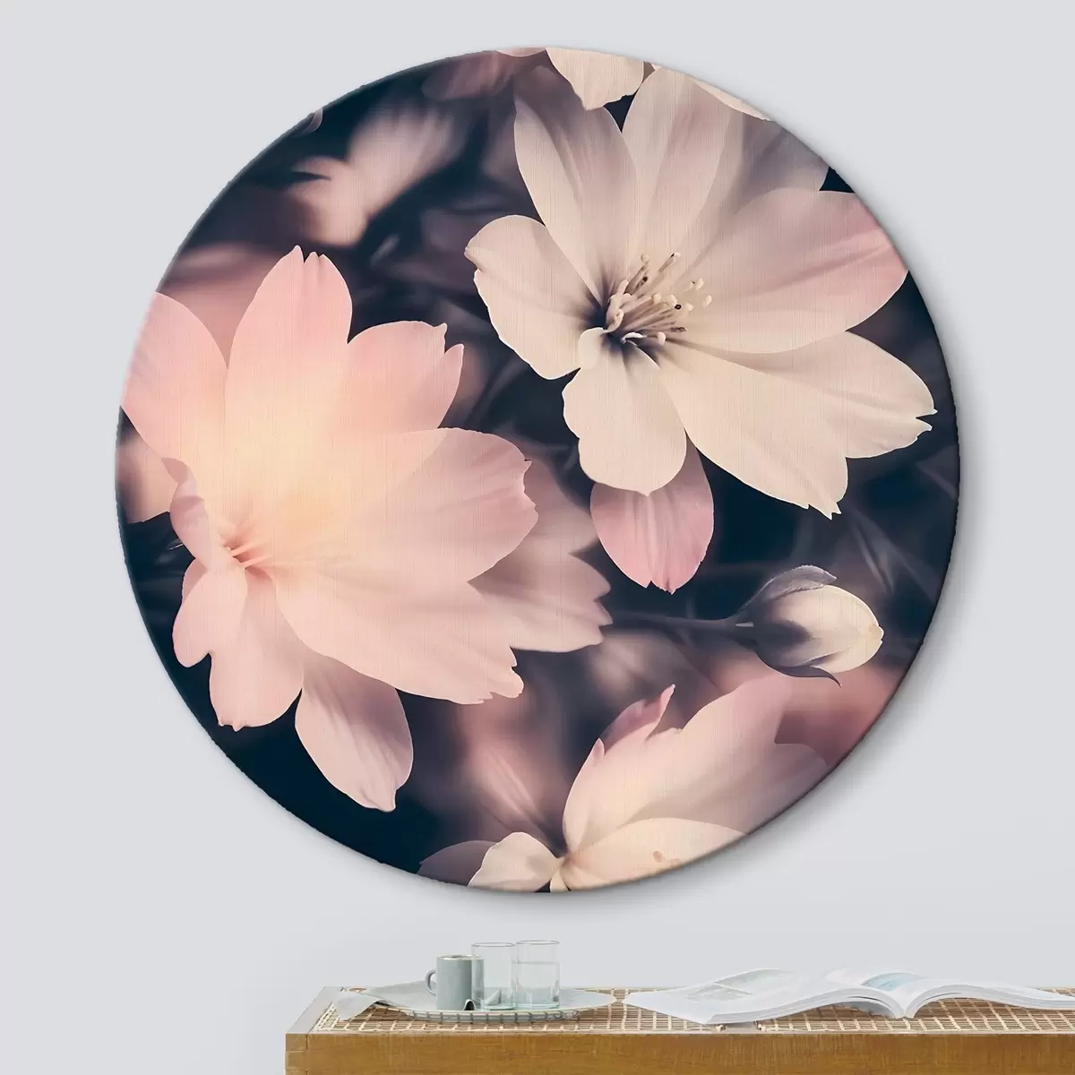 Picturi rotunde Flori moi roz și albe în stil vintage cu fundal neclar r41084
