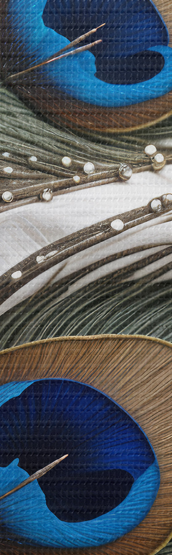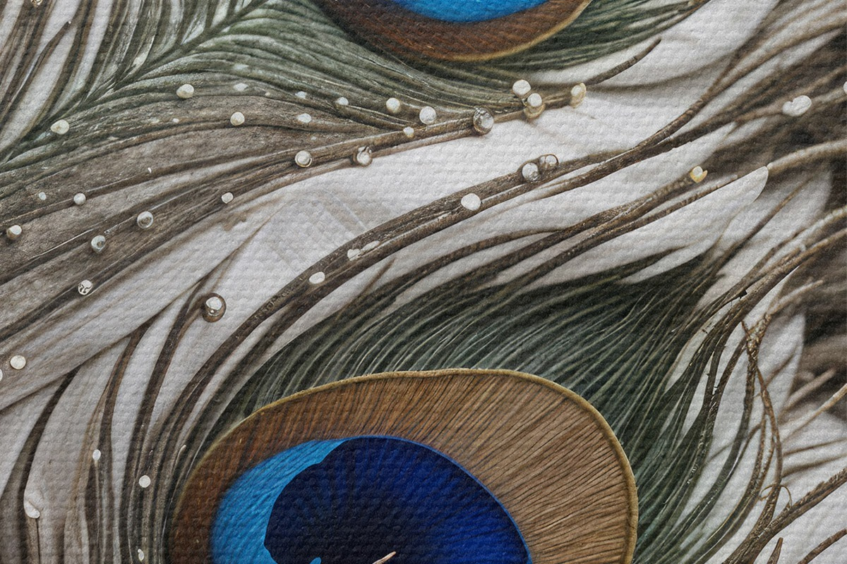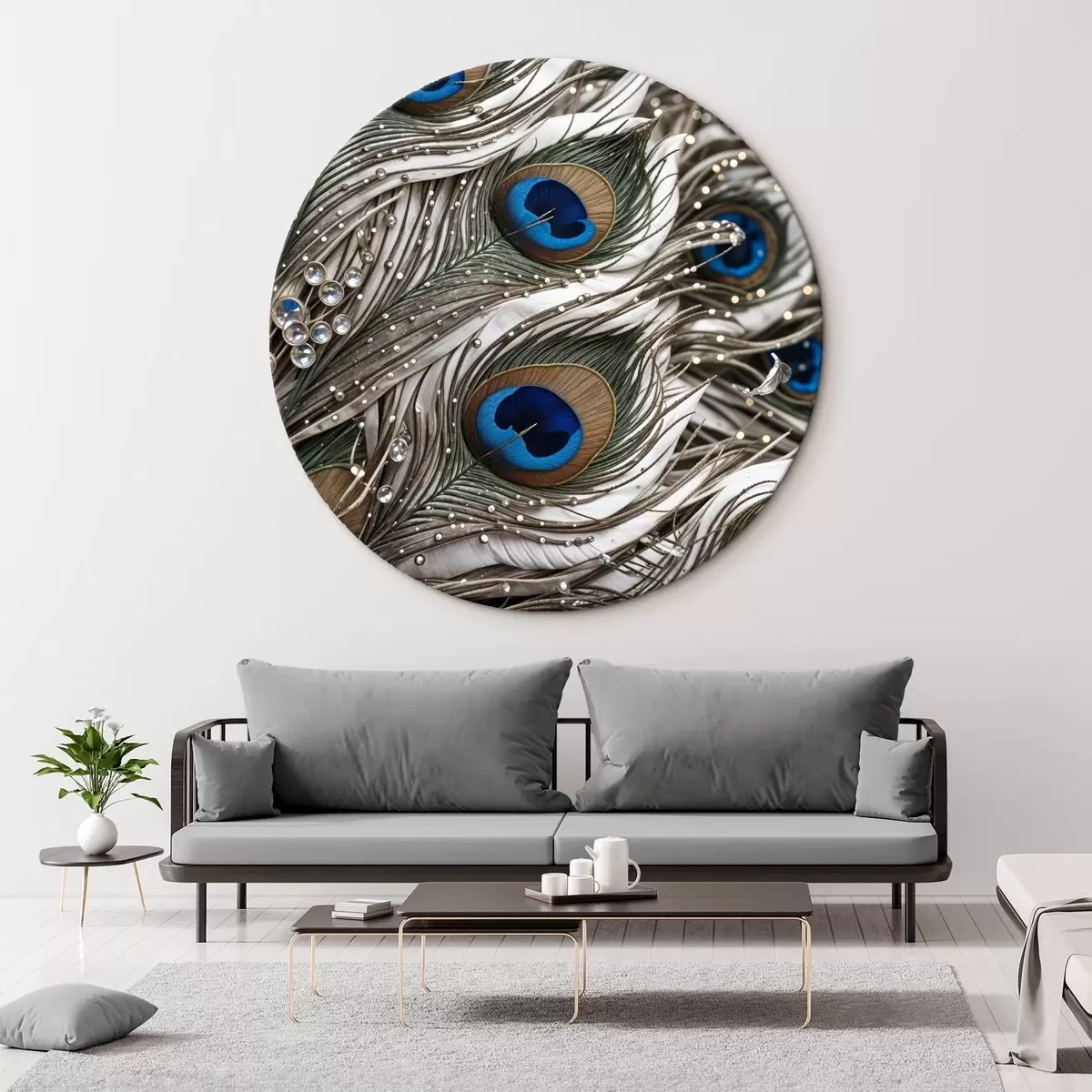 Picturi rotunde Pene de păun vibrante cu desene complicate și modele albastre izbitoare Nr r41103