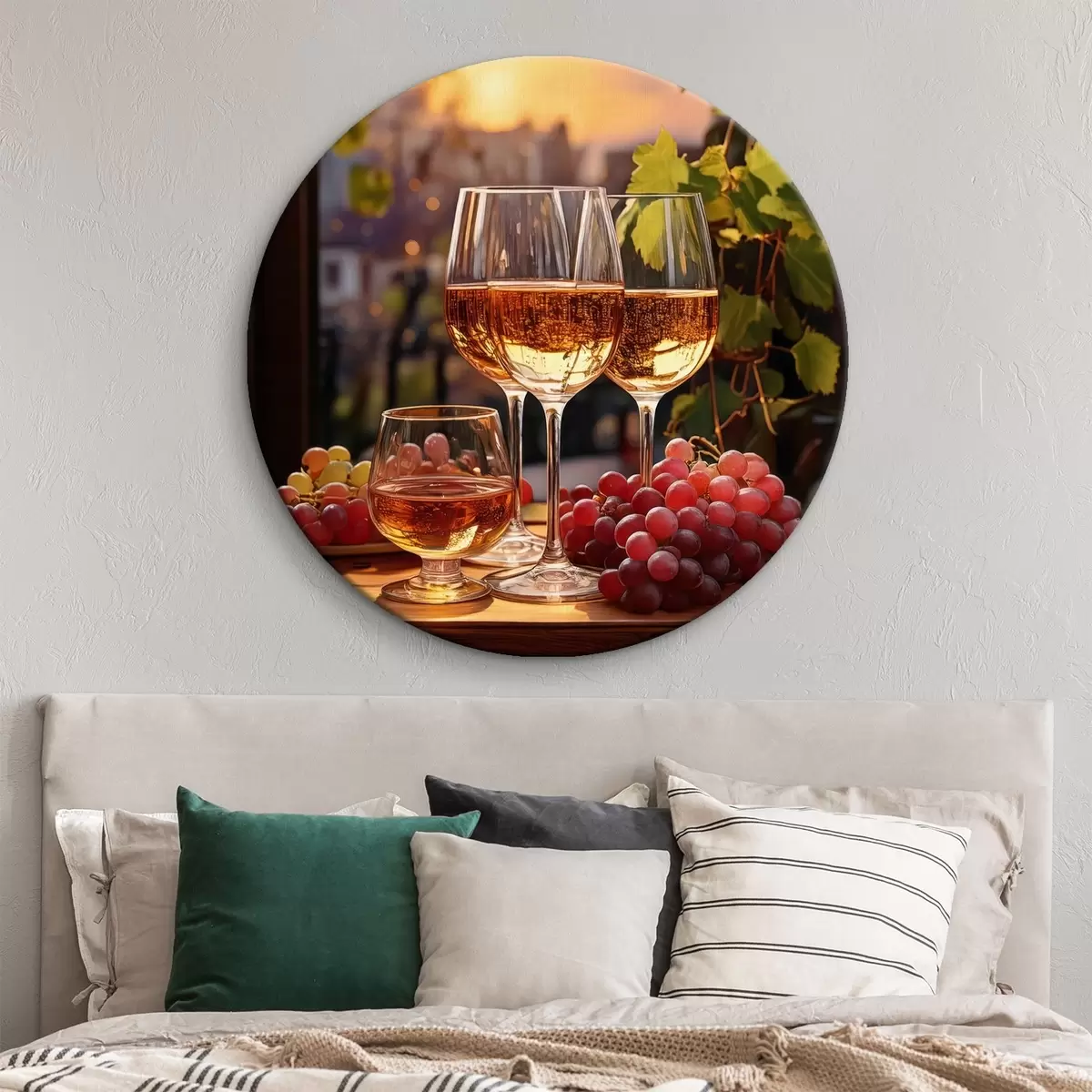 Picturi rotunde pahare cu vin, struguri pe masă, natură statică Nr r41104