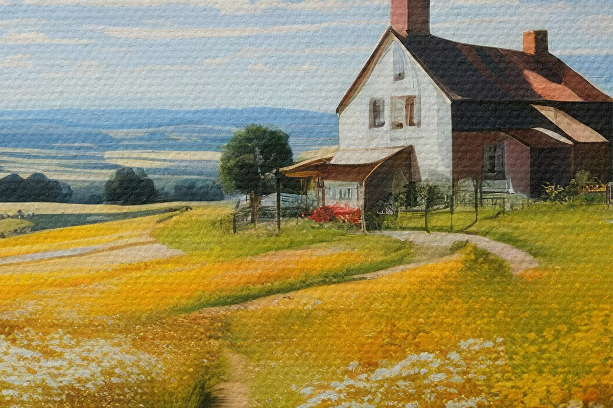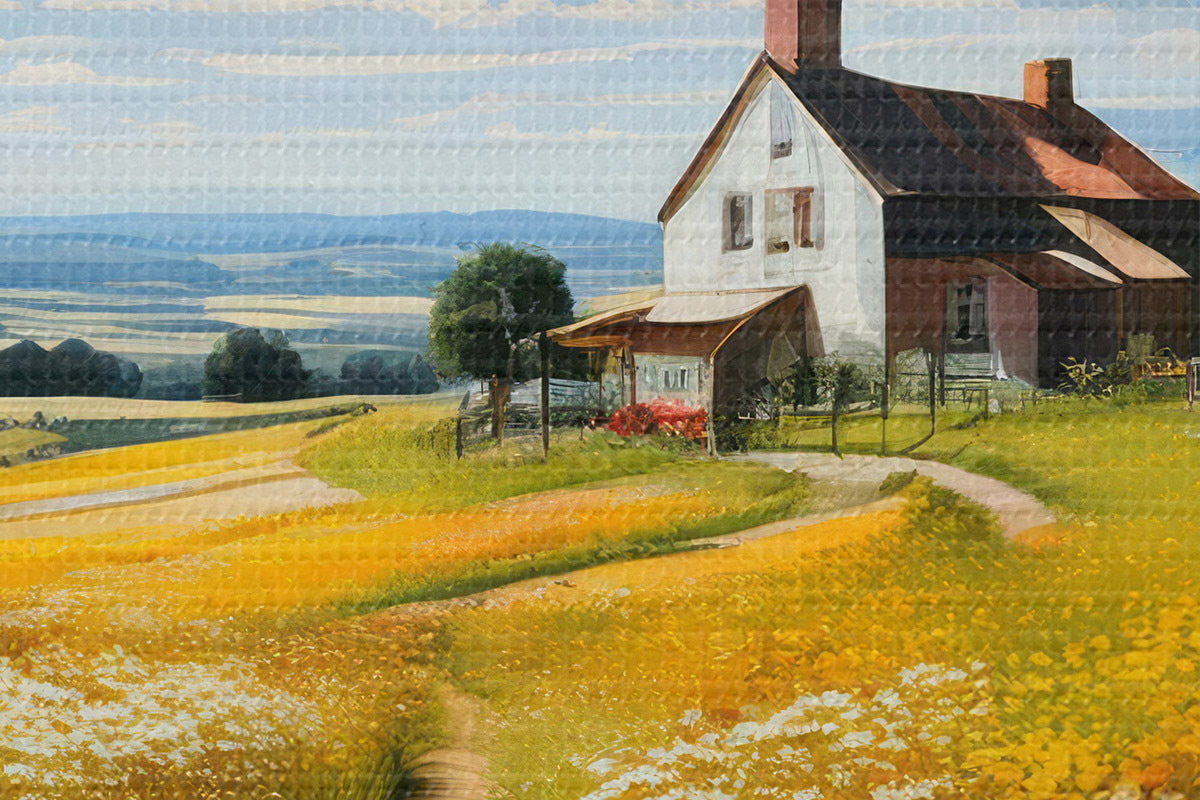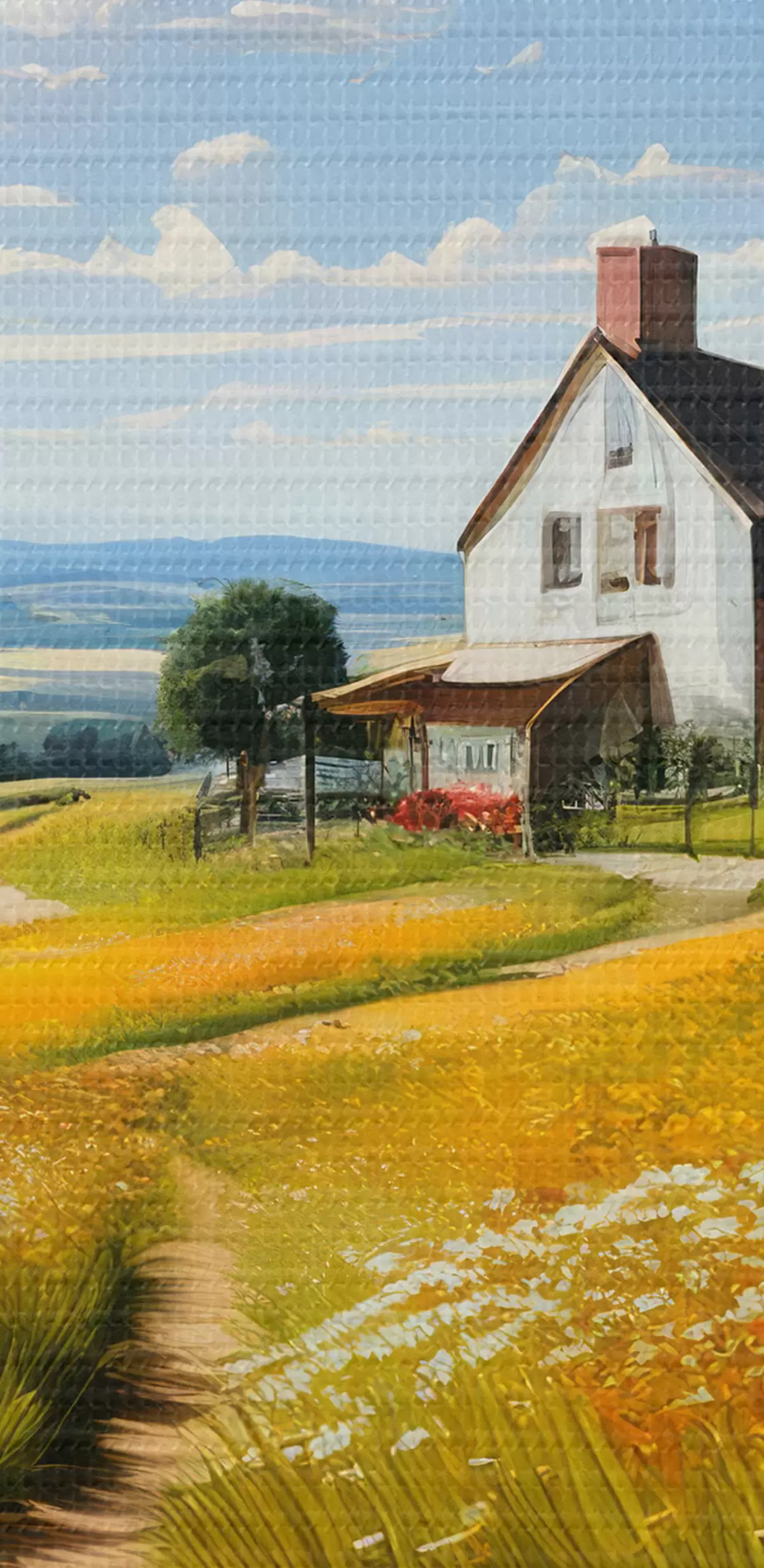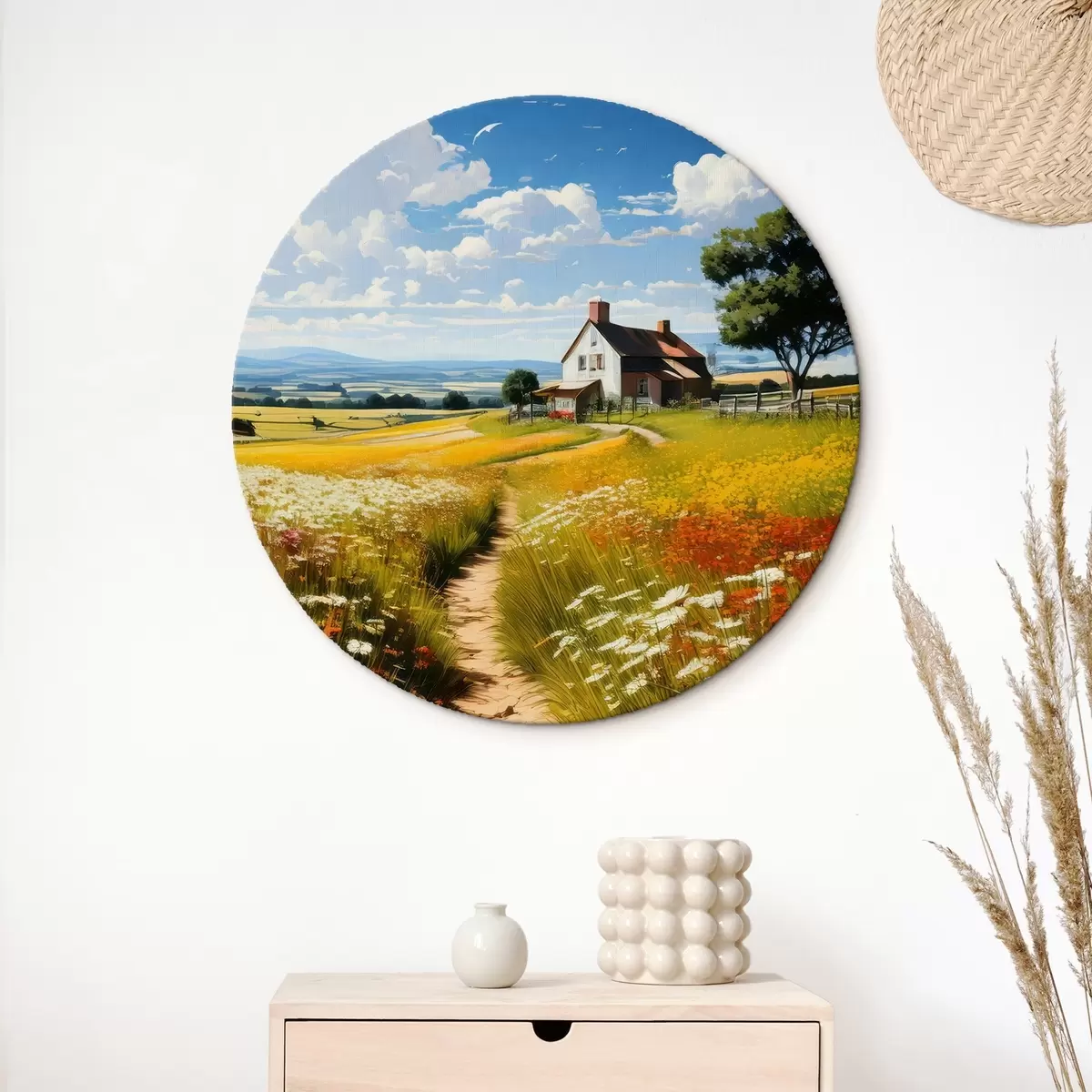 Picturi rotunde cale într-un câmp înflorit și casă r41109