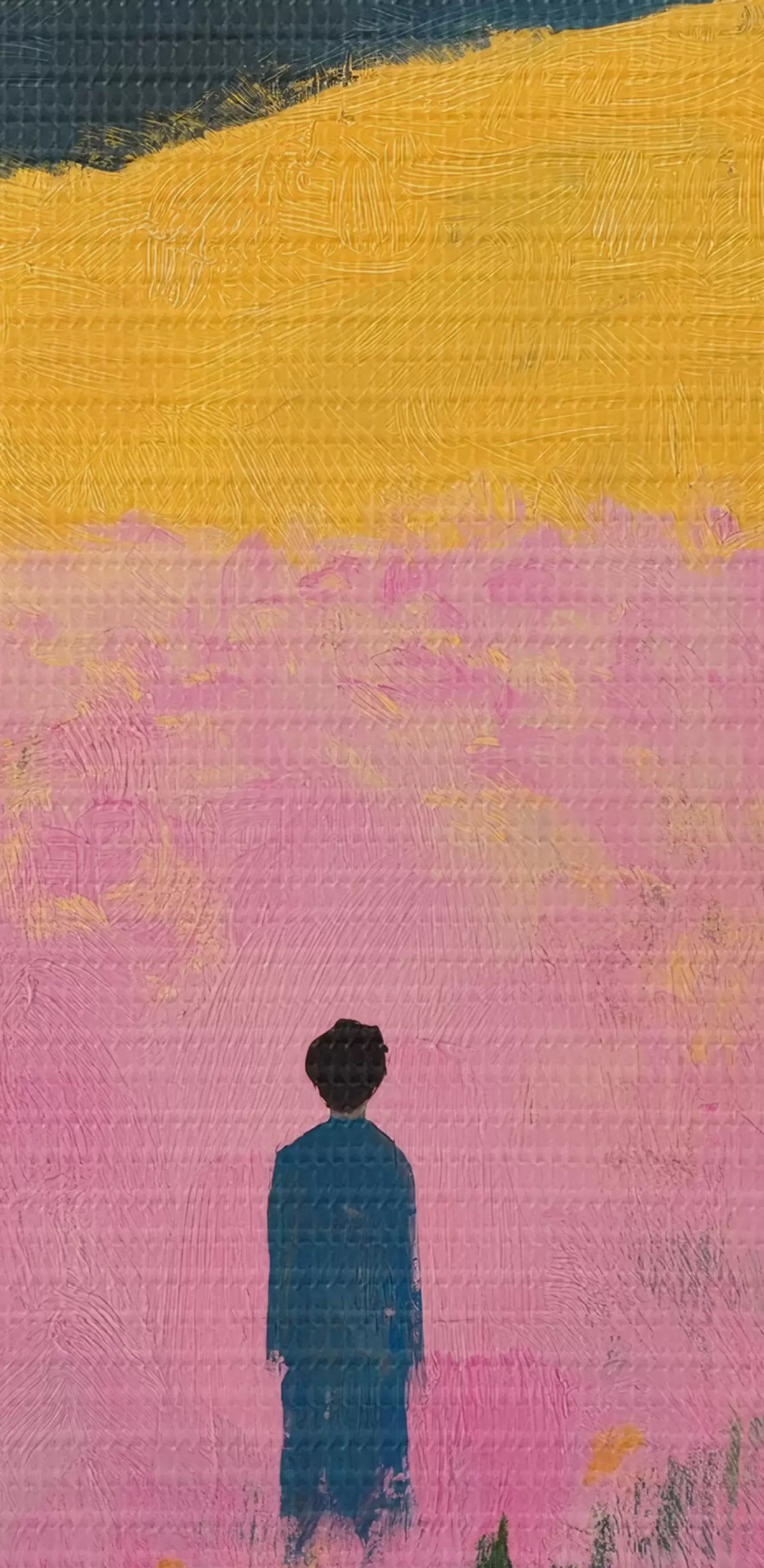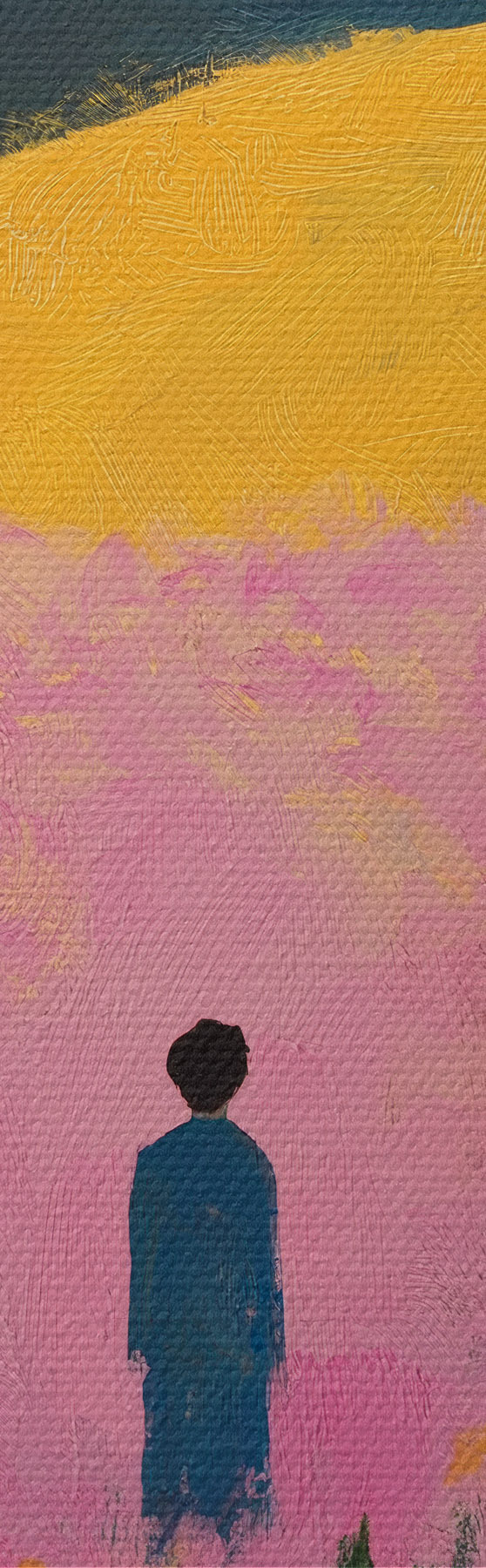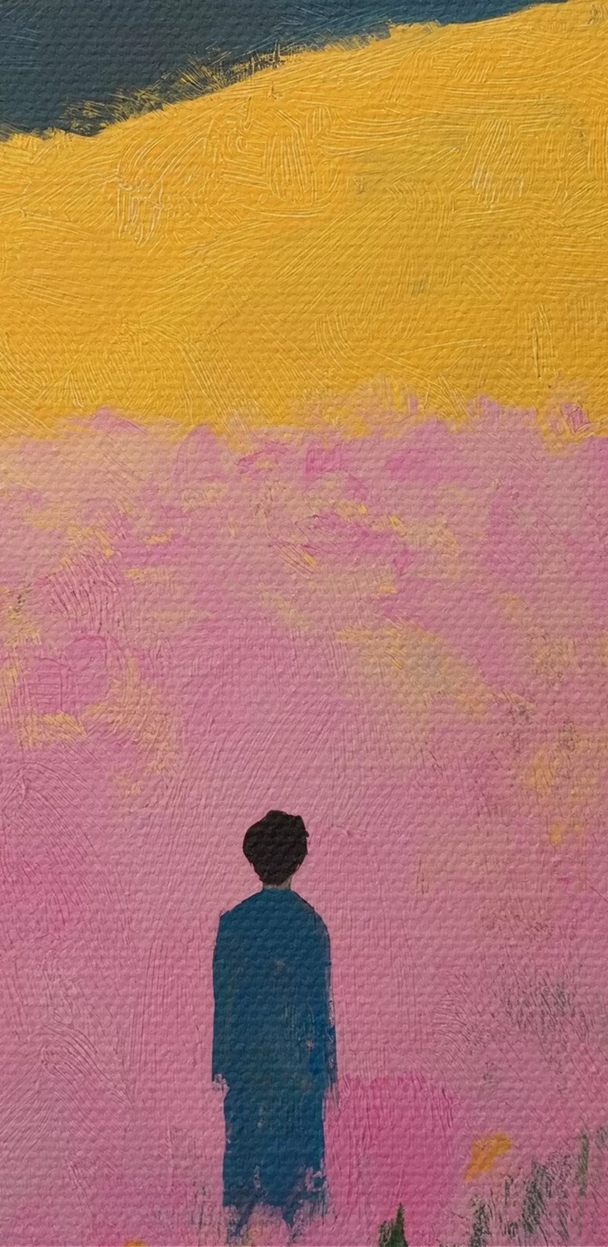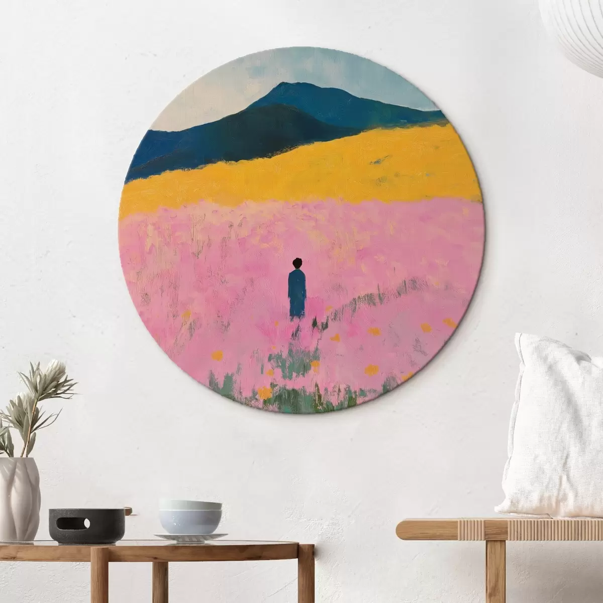 Picturi rotunde Bărbat pe un câmp cu flori roz Nr r41164