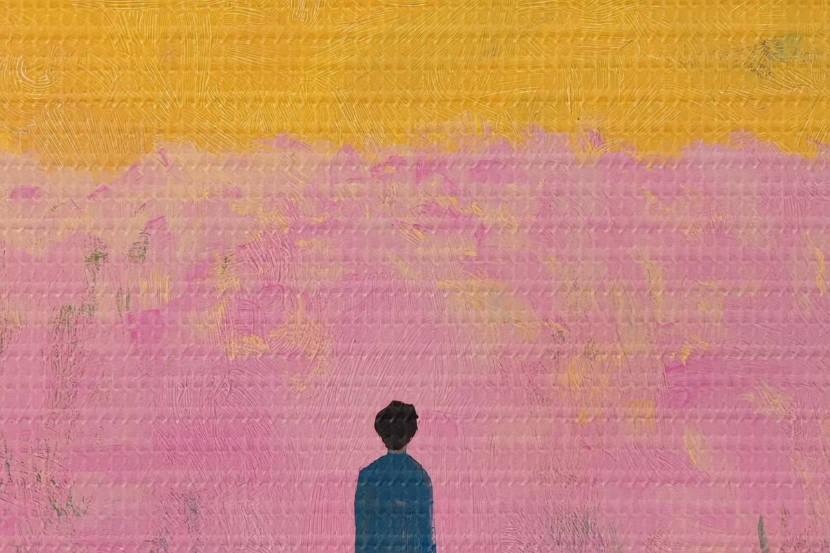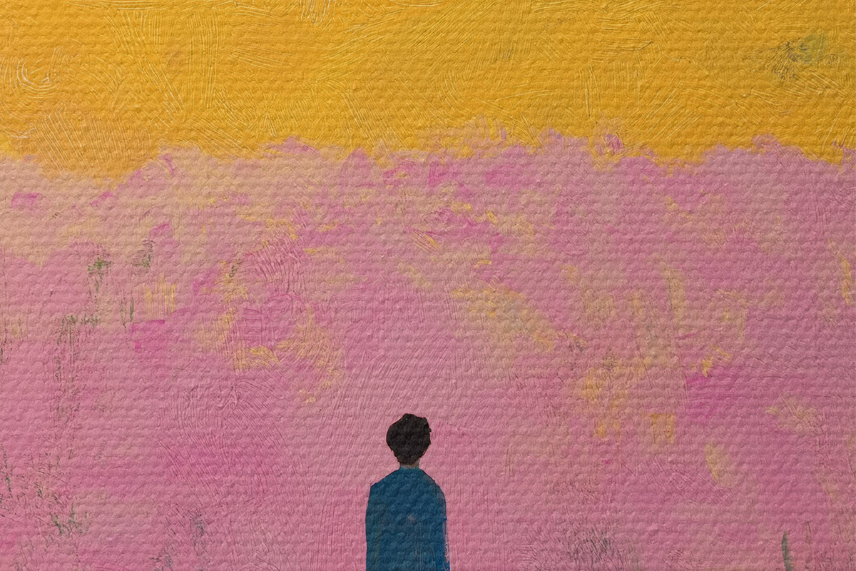 Picturi rotunde Bărbat pe un câmp cu flori roz r41164