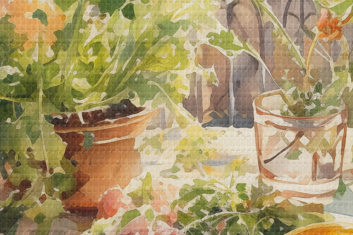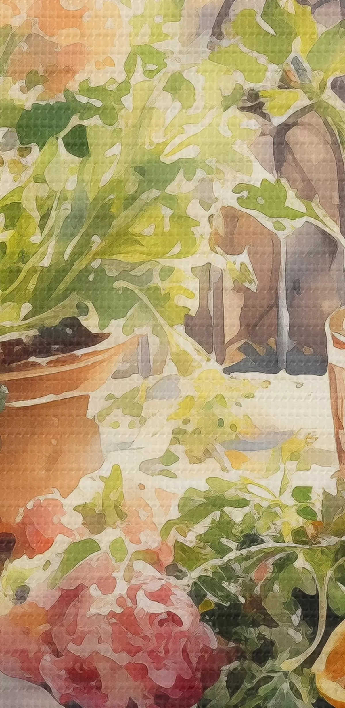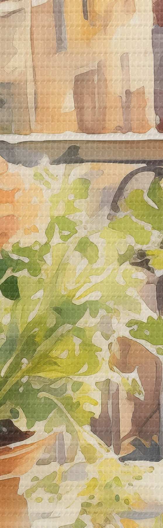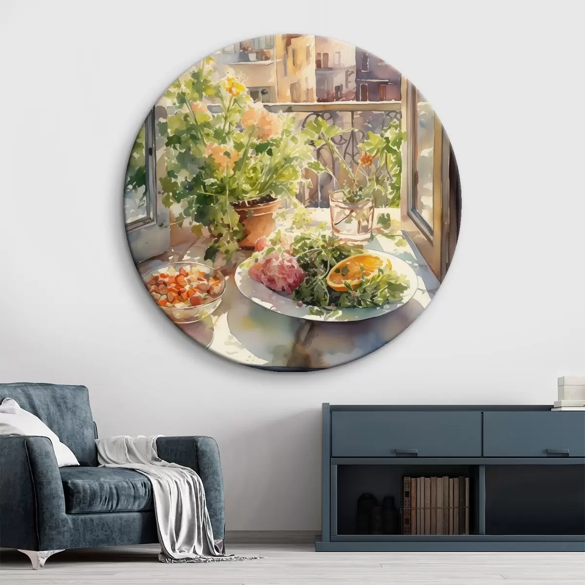 Picturi rotunde Cină acuarelă, vedere la oraș, flori, natură, salată verde r41166