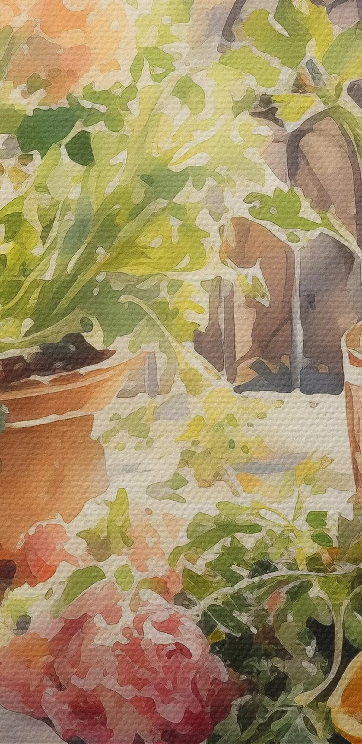 Picturi rotunde Cină acuarelă, vedere la oraș, flori, natură, salată verde Nr r41166