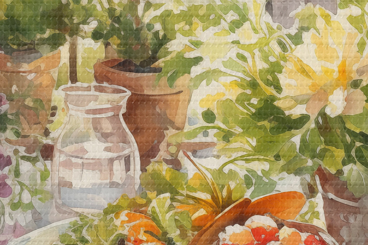 Picturi rotunde Cină romantică cu vedere la oraș, acuarelă, flori r41168