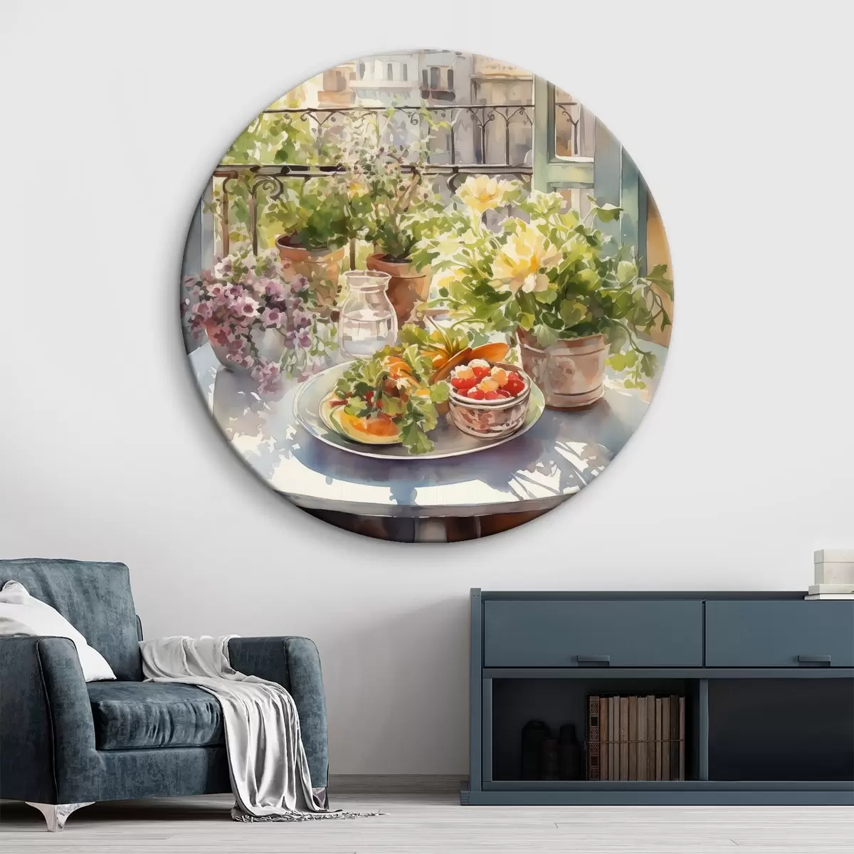 Picturi rotunde Cină romantică cu vedere la oraș, acuarelă, flori Nr r41168
