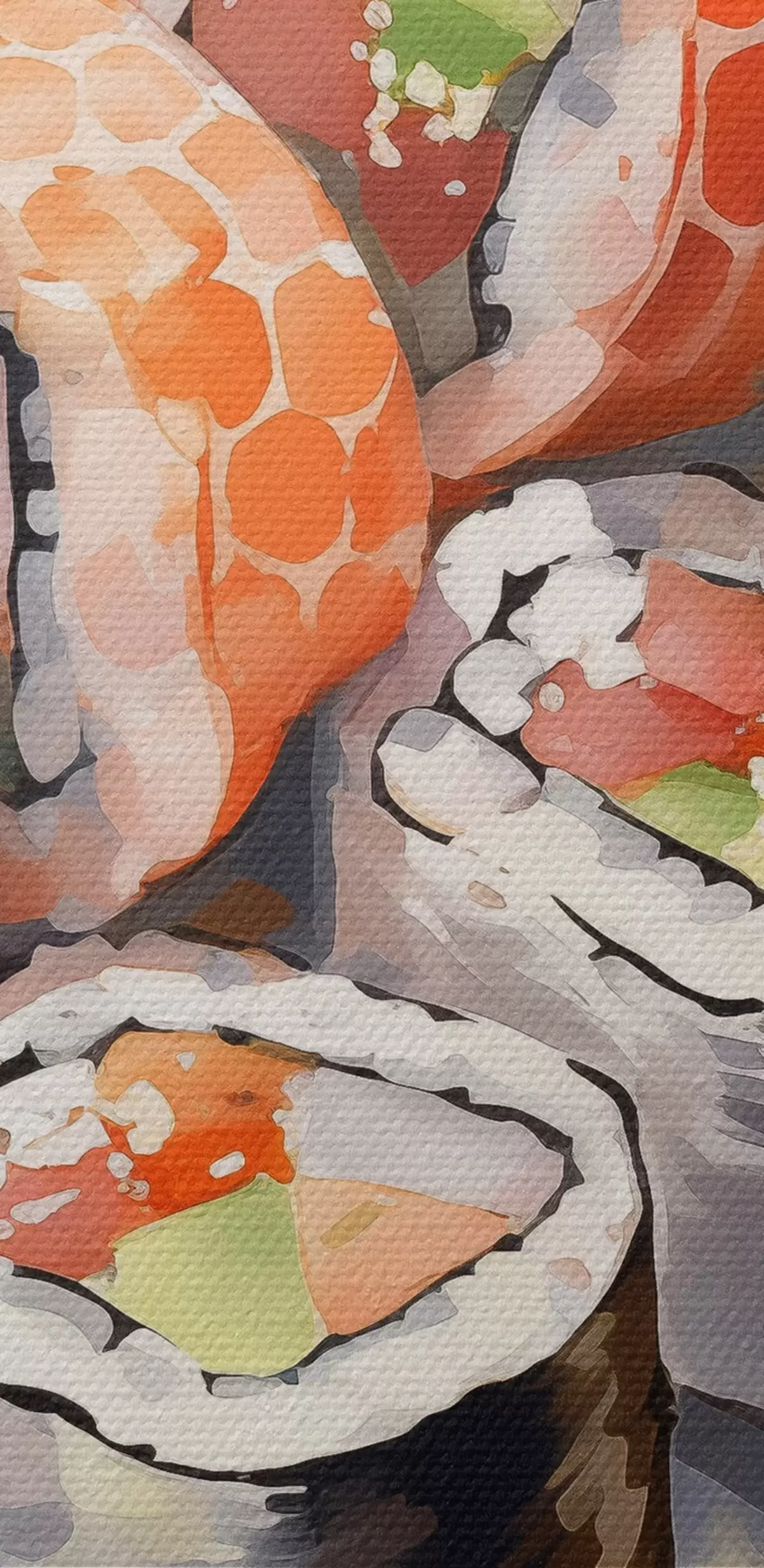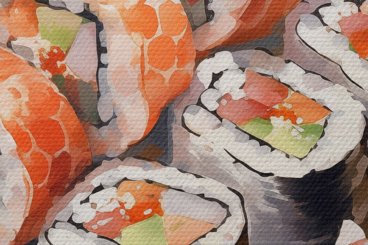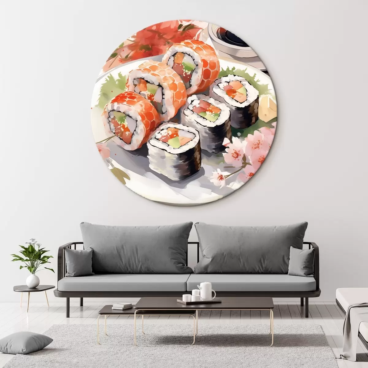 Picturi rotunde Sushi pe o farfurie, acuarelă, floral, japonez Nr r41179