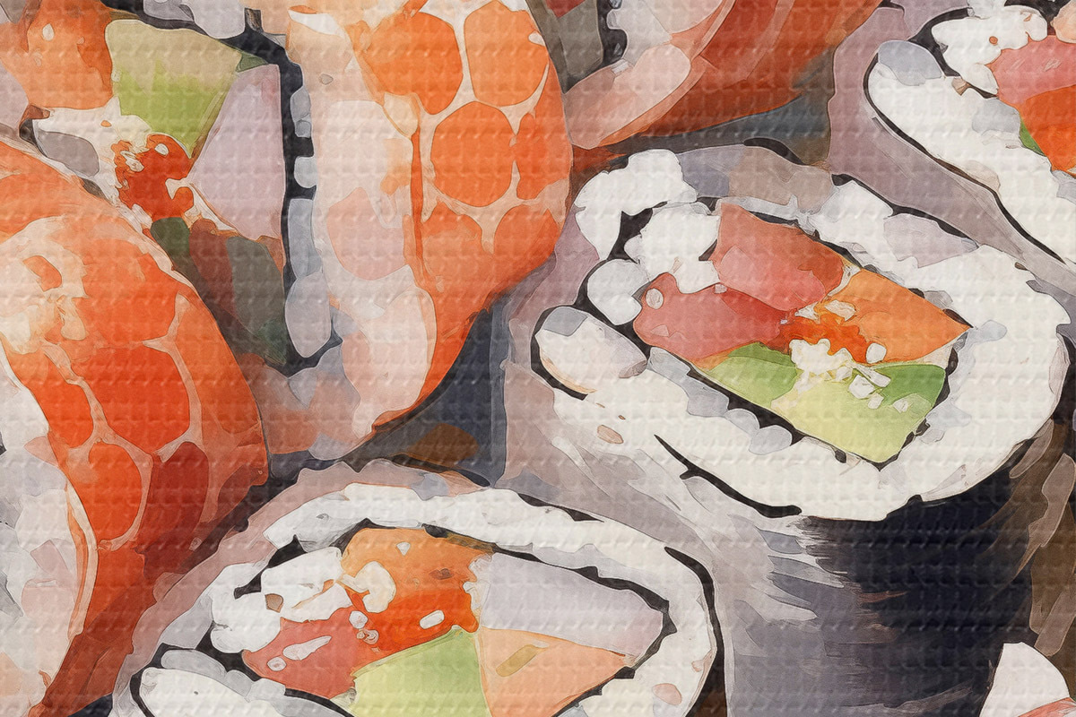 Picturi rotunde Sushi pe o farfurie, acuarelă, floral, japonez r41179